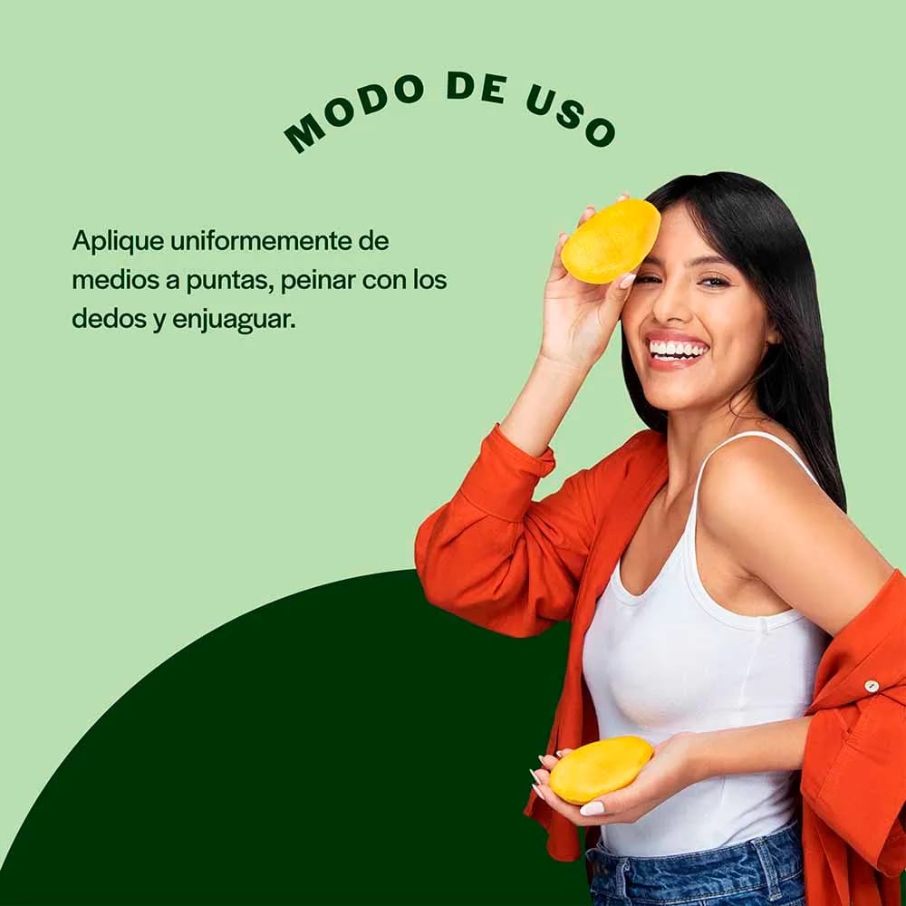 Aplicar uniformemente de medios a puntas sobre el cabello mojado después del shampoo. Peinar con los dedos y enjuagar.