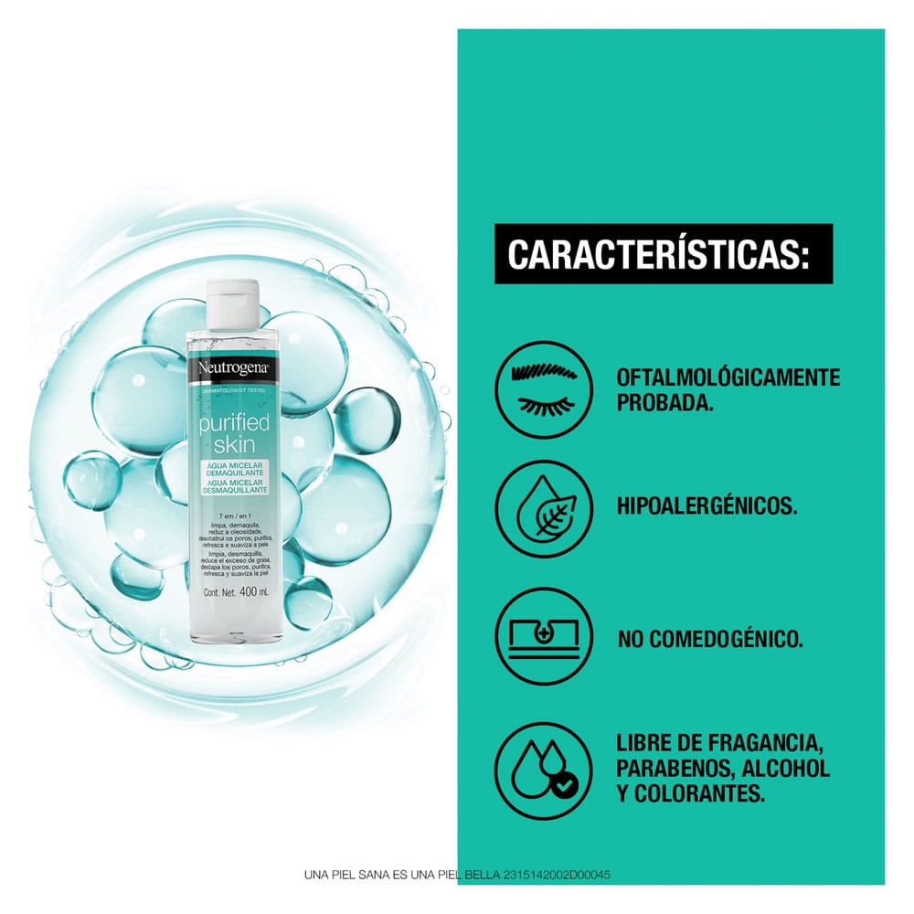 Agua Micelar Desmaquillante 7 en 1 NEUTROGENA Purified Skin Frasco 400ml