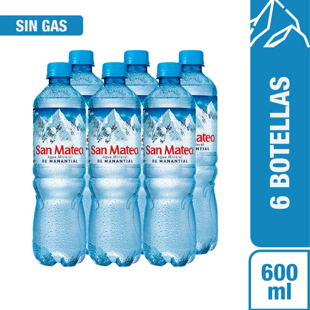 Agua Mineral SAN MATEO sin Gas Botella 600ml Paquete 6un