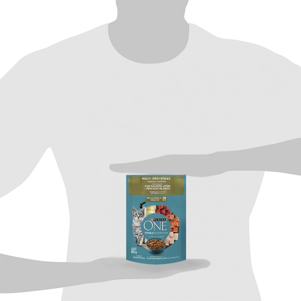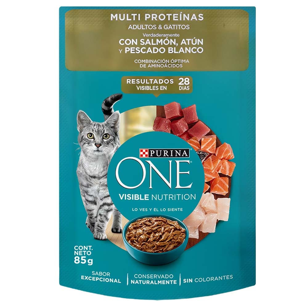 Alimento Húmedo para Gato PURINA ONE Adulto y Gatito Sabor Salmón, Atún y Pescado Pouch 85g
