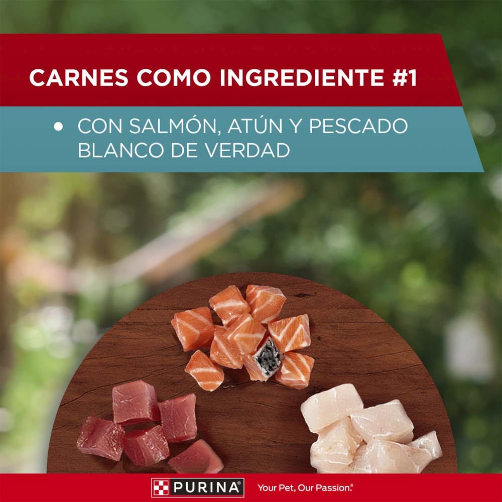 Alimento húmedo Multi Proteínas Salmón, Atún y Pescado Blanco Adultos y Gatitos Alimento balanceado y completo, para gatos adultos y gatitos de todos los tamaños