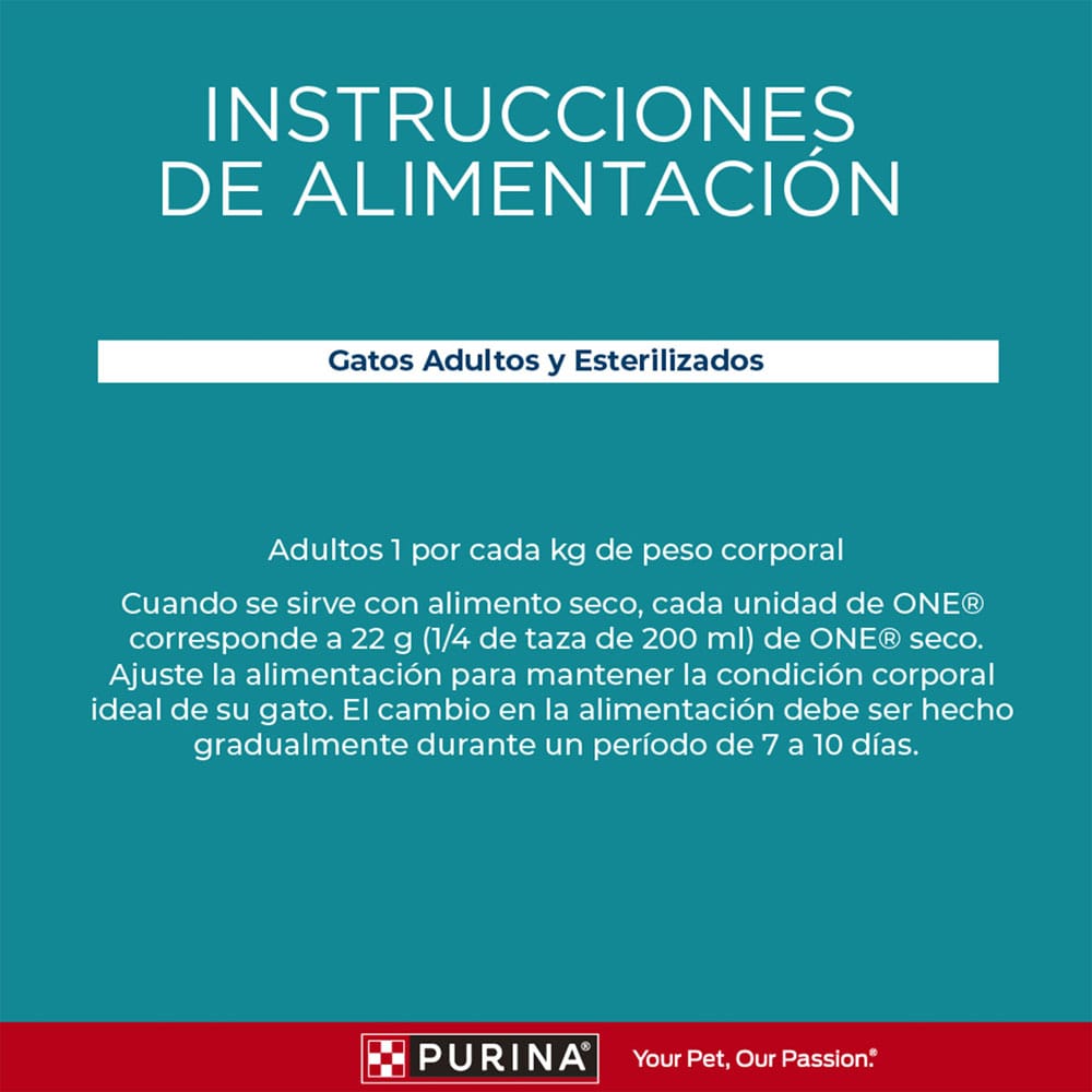 Alimento balanceado, completo, húmedo, para gatos adultos y esterilizados de todos los tamaños.