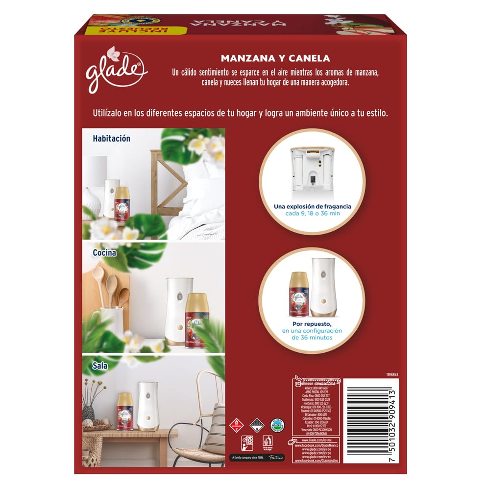 Ambientador eléctrico GLADE Manzana y canela aparato y repuesto Frasco 270Ml
