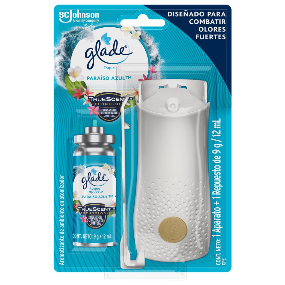 Ambientador en Atomizador GLADE Toque Paraíso Azul Aparato + Repuesto Paquete 2un