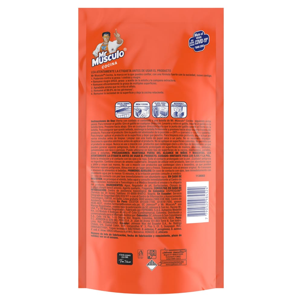 Antigrasa MR MÚSCULO Cocina Naranja Repuesto Doypack 500cm3