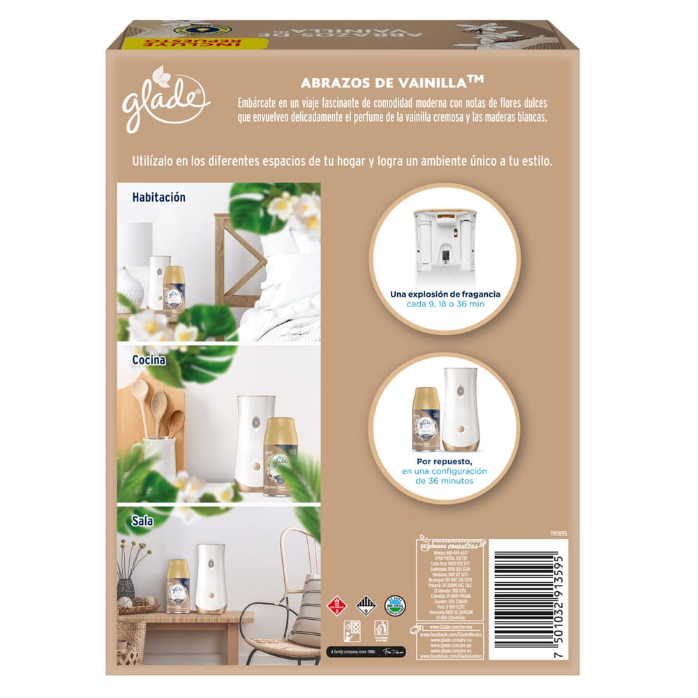 Aromatizador Automático GLADE Abrazos de Vainilla Paquete 1un + Repuesto 175g