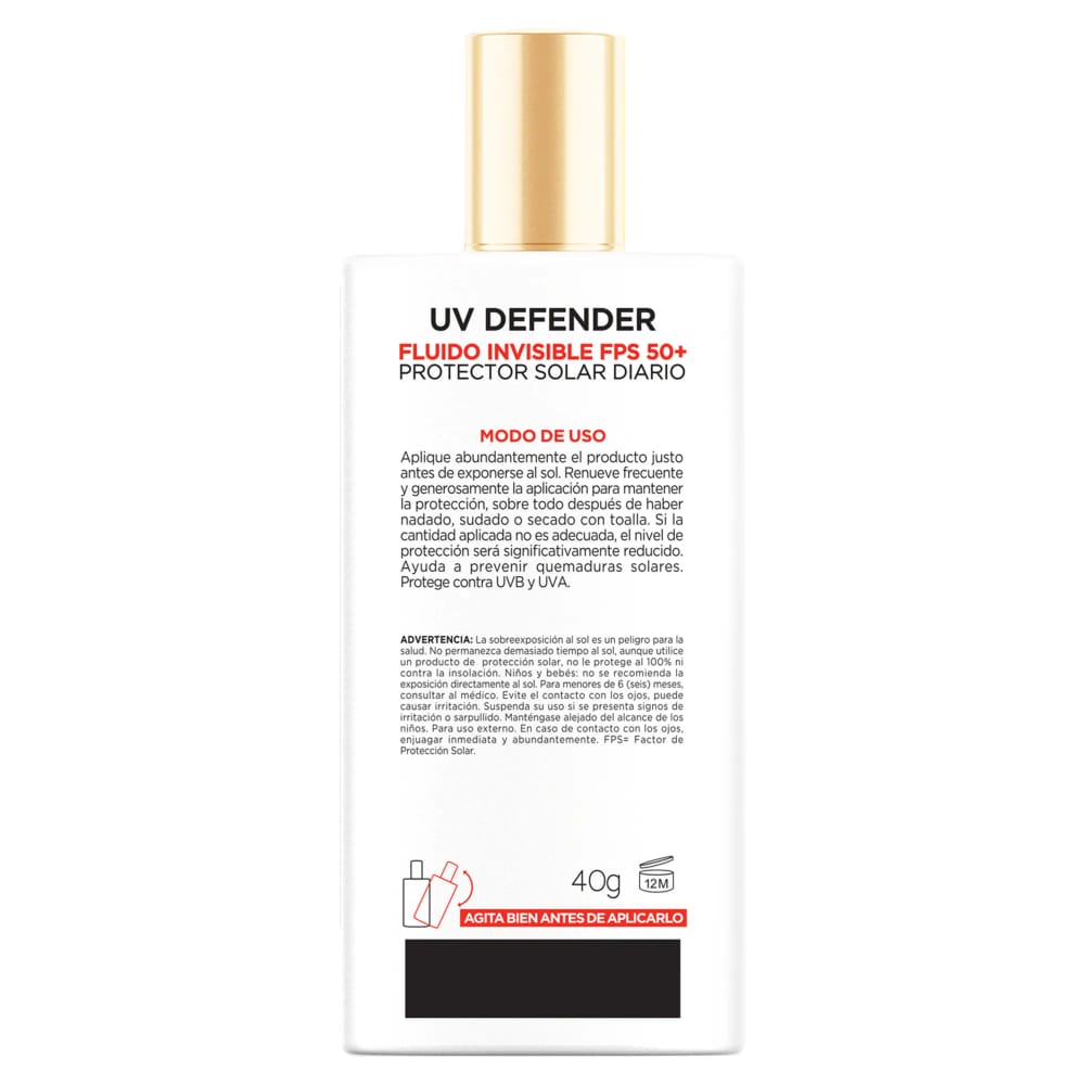 Bloqueador UV Defender L'ORÉAL Fluido Invisible FPS50 Frasco 40g
