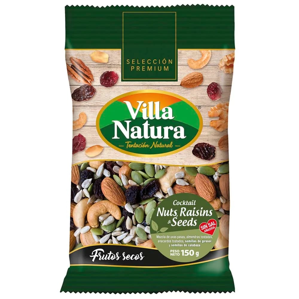 Cocktail de Nueces VILLA NATURA Raisins & Seeds Bolsa 150g