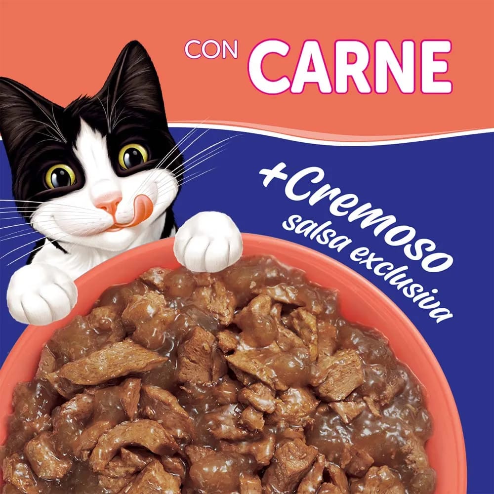 Delicioso alimento húmedo completo y balanceado para gatos en desarrollo, compuesto por trocitos de carne, para deleitar hasta al paladar gatuno más exigente.