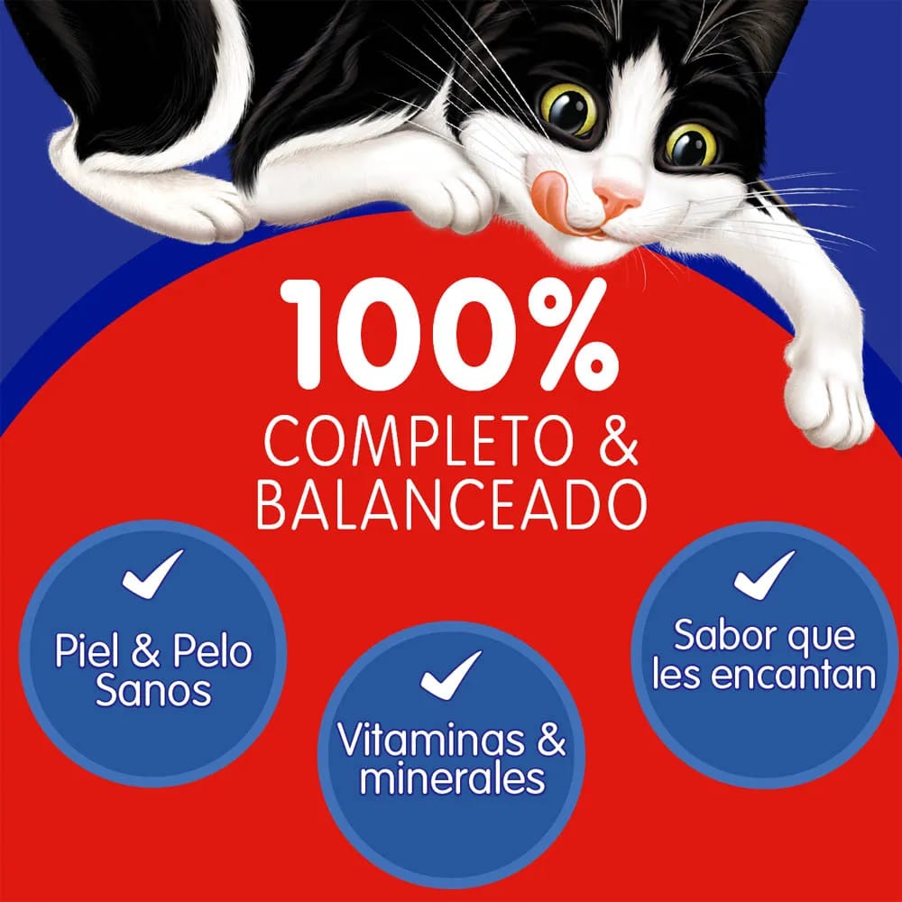 Tu gato disfrutará de una irresistible comida cada día, y con Felix® podrás satisfacer su amor por la variedad. Tan bueno como se ve. Es un una deliciosa combinación balanceada que satisfacerá él 100% del requerimiento nutricional de tu gato adulto. Cada porción está complementada con ácidos grasos esenciales Omega 6.
