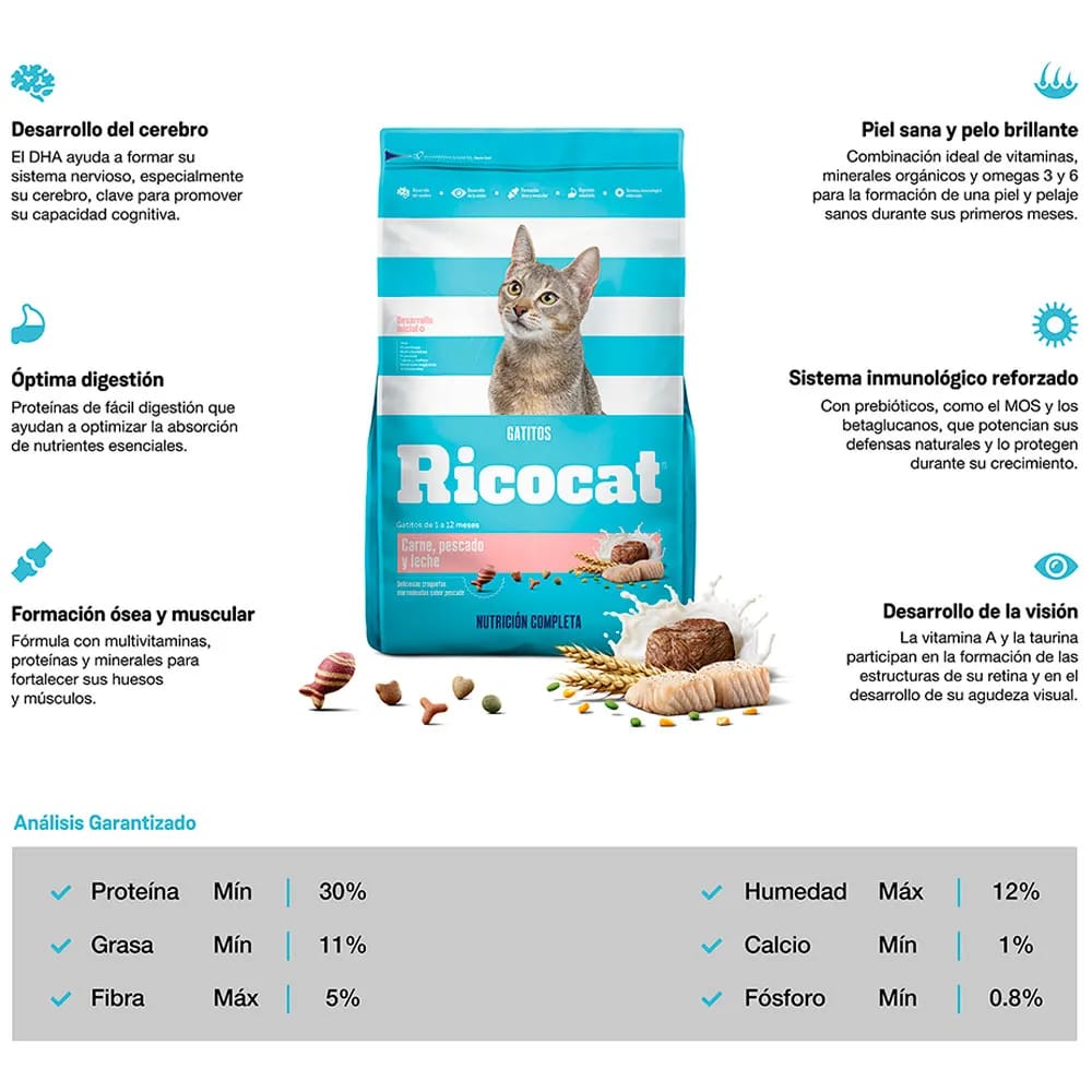 Alimento para Gato RICOCAT Gatito Sabor Carne Pescado y Leche Bolsa 1Kg