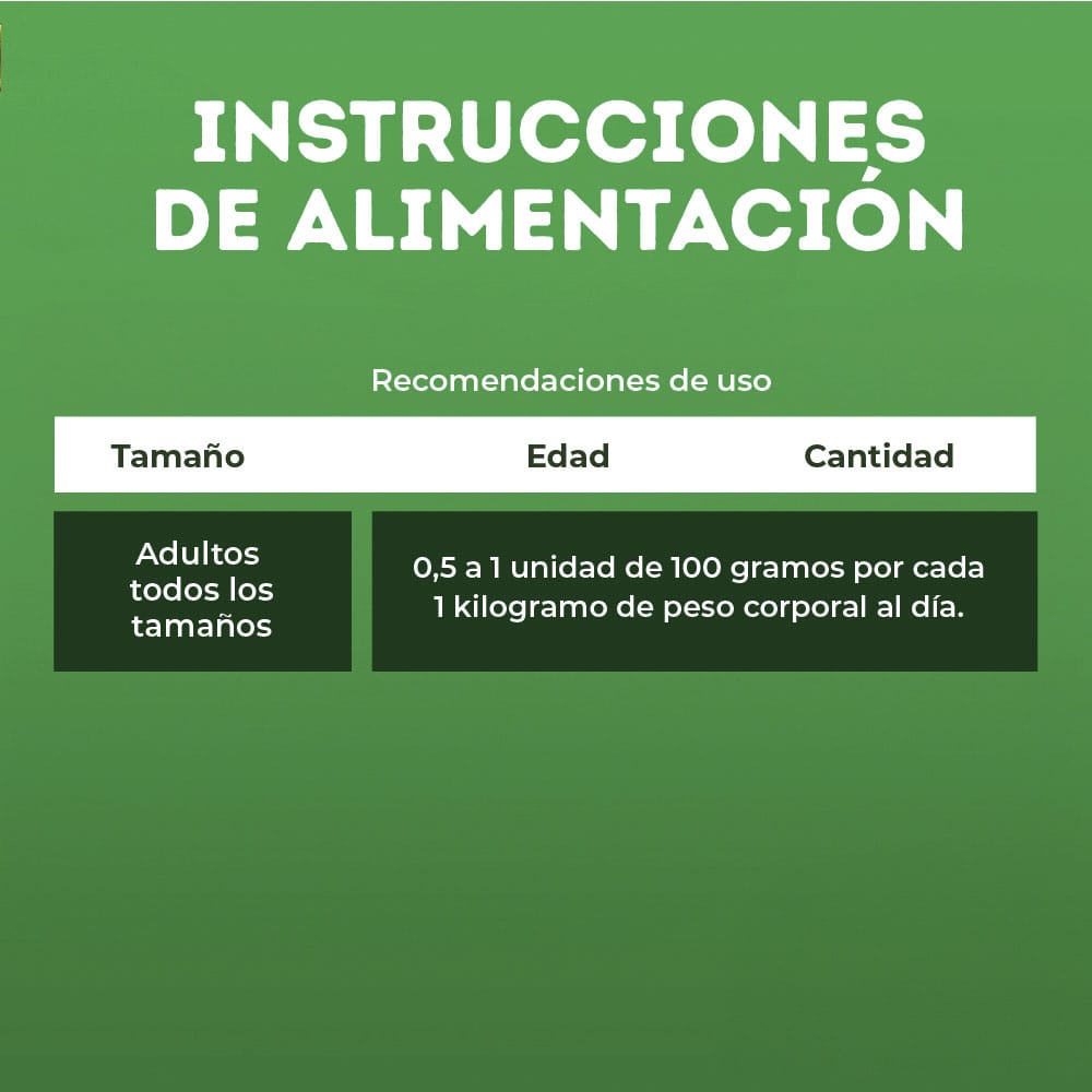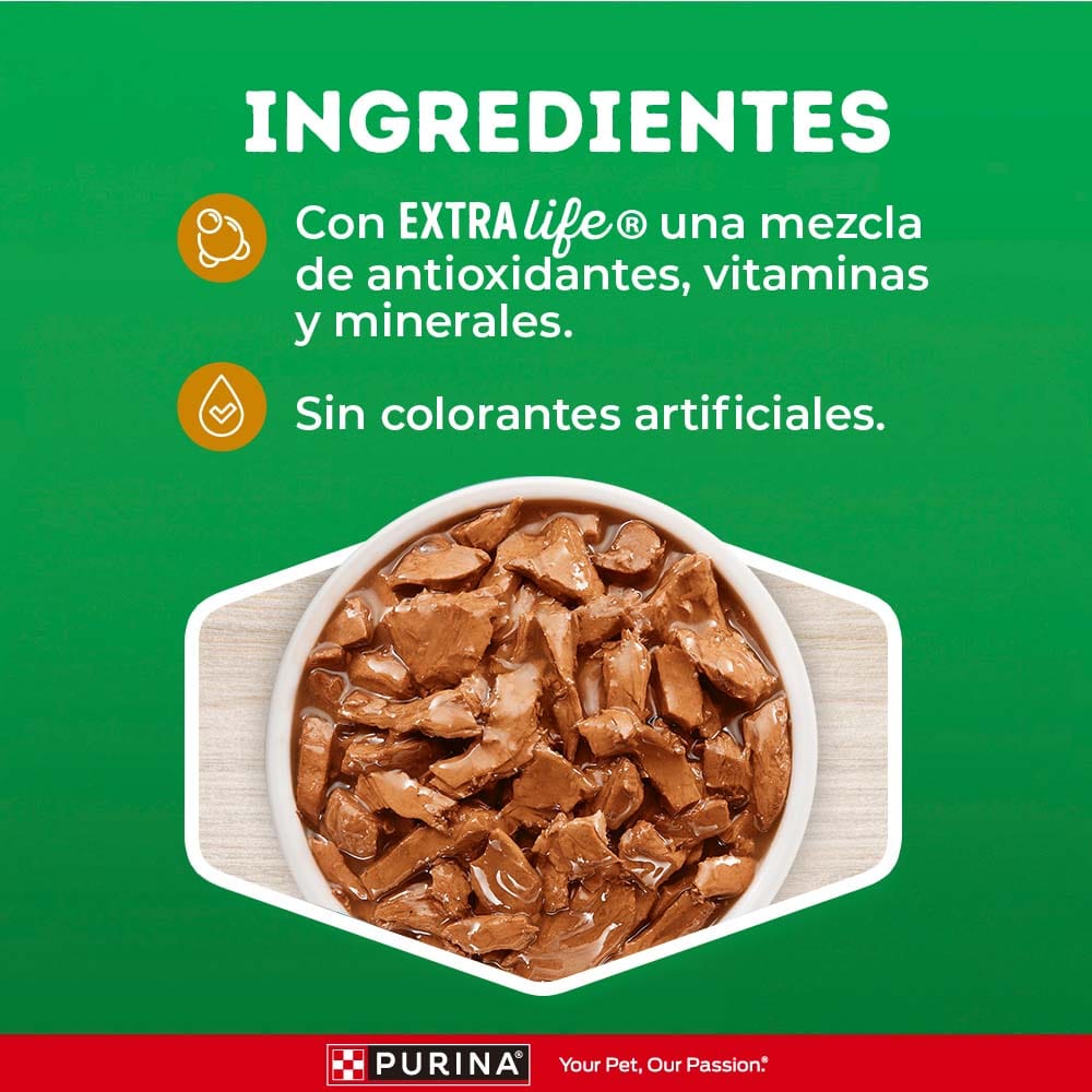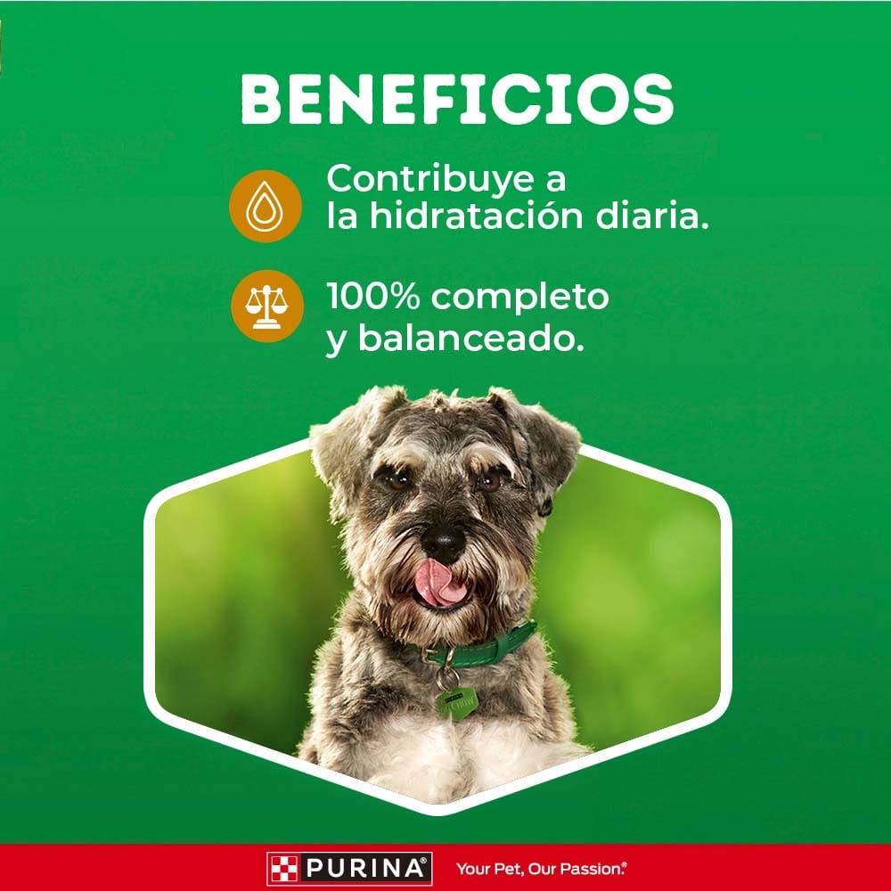 Mayor hidratación por un alto contenido de agua. Recomendado para perros con problemas de dentición. Contiene calcio para dientes fuertes y ayuda a reducir la formación de la placa bacterial y del sarro. No tiene adición de conservantes artificiales.