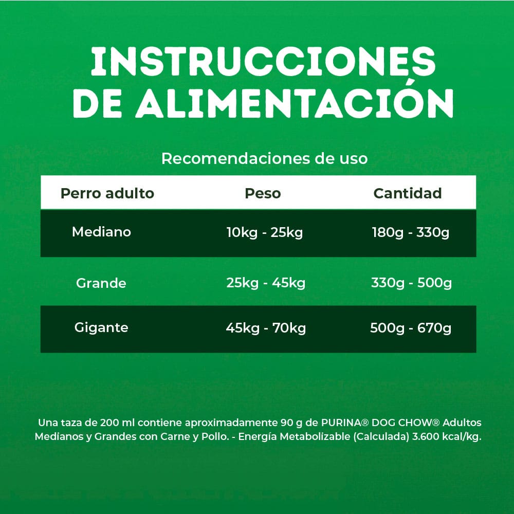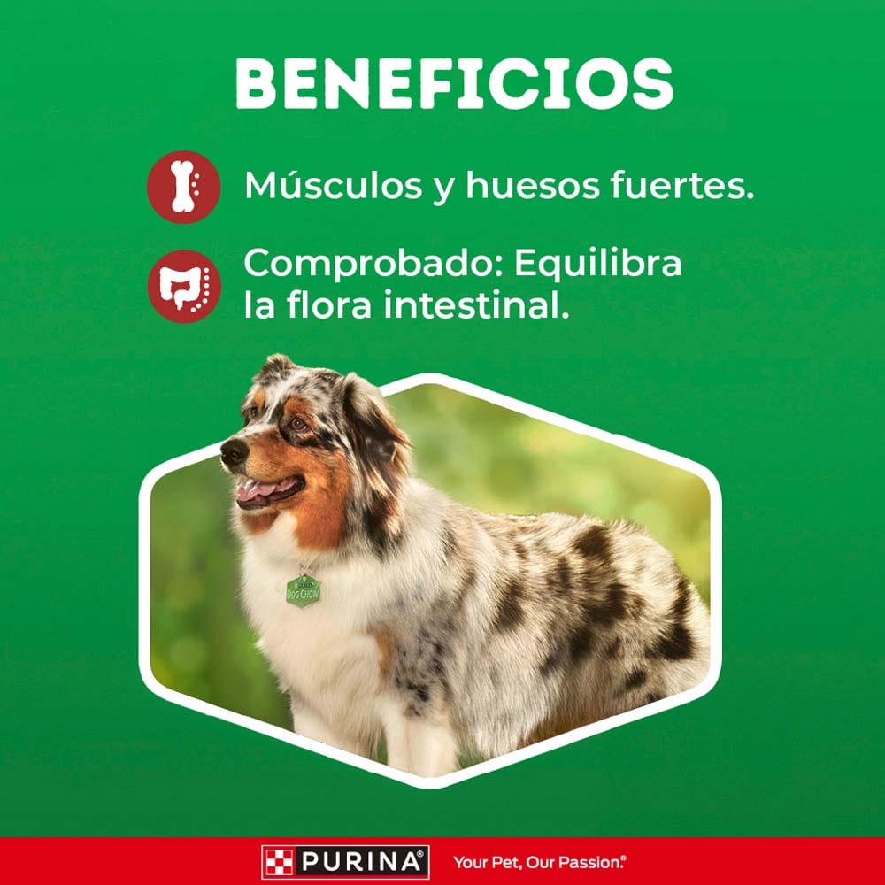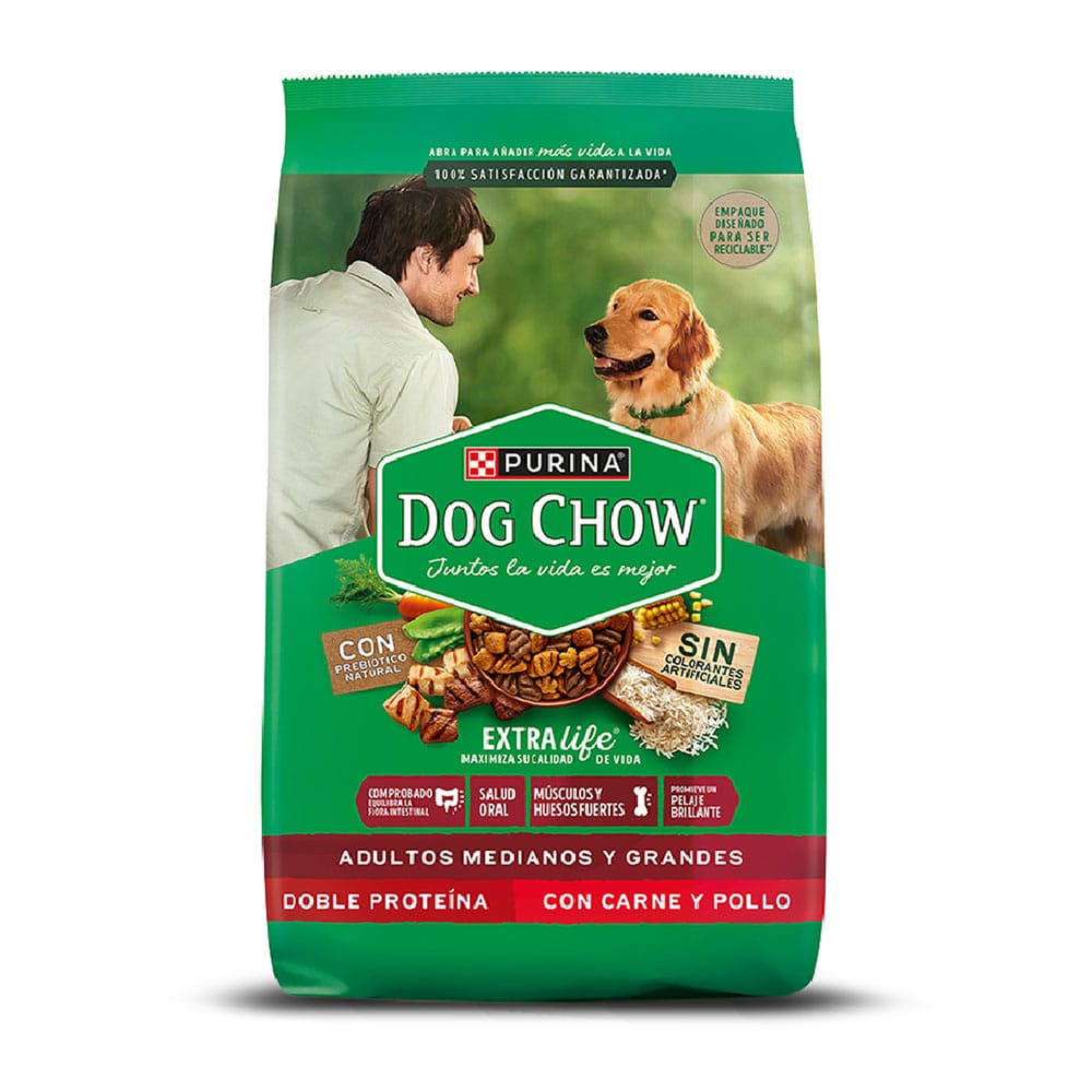 DOG CHOW CON EXTRALIFE, una mezcla especial de antioxidantes, vitaminas y minerales para maximizar la calidad de vida de tu perro. Alimento 100% completo y balanceado que está específicamente formulado para perros adultos medianos y grandes de 1 a 7 años. Cuenta con los nutrientes e ingredientes de alta calidad que su cuerpo necesita para crecer sano y fuerte.