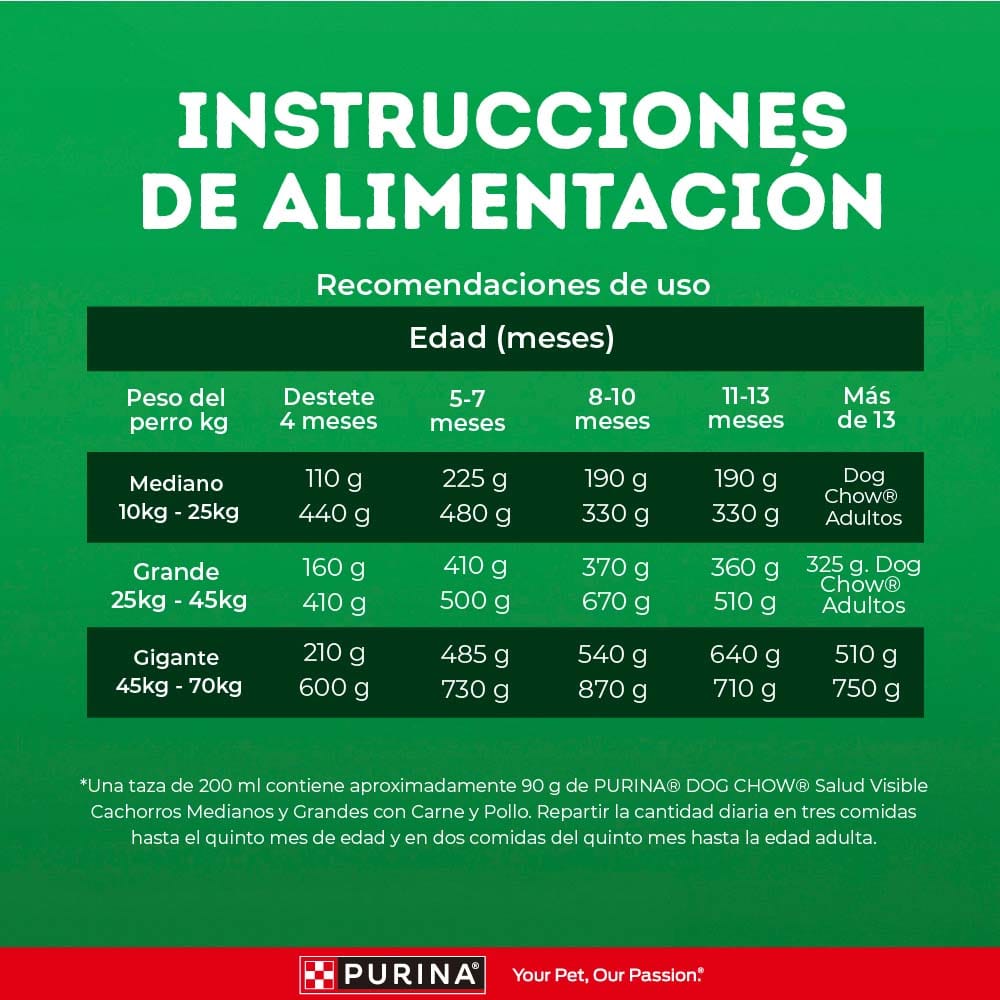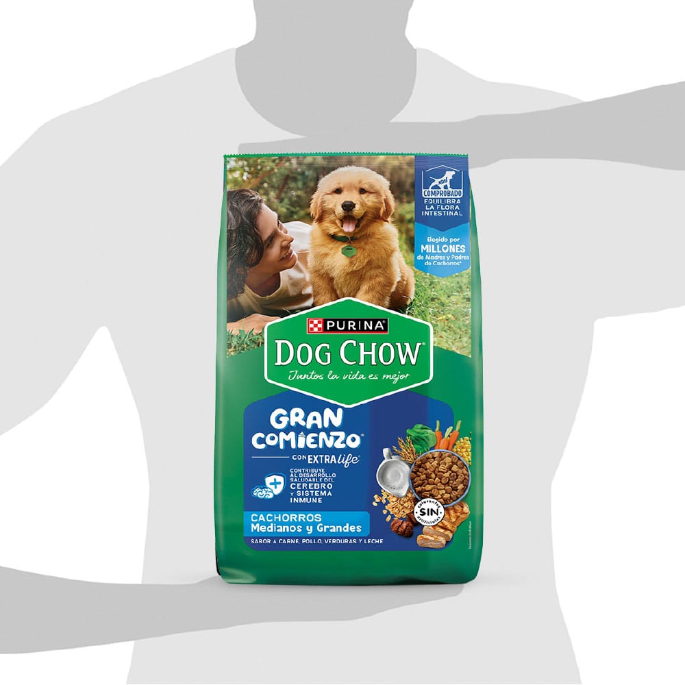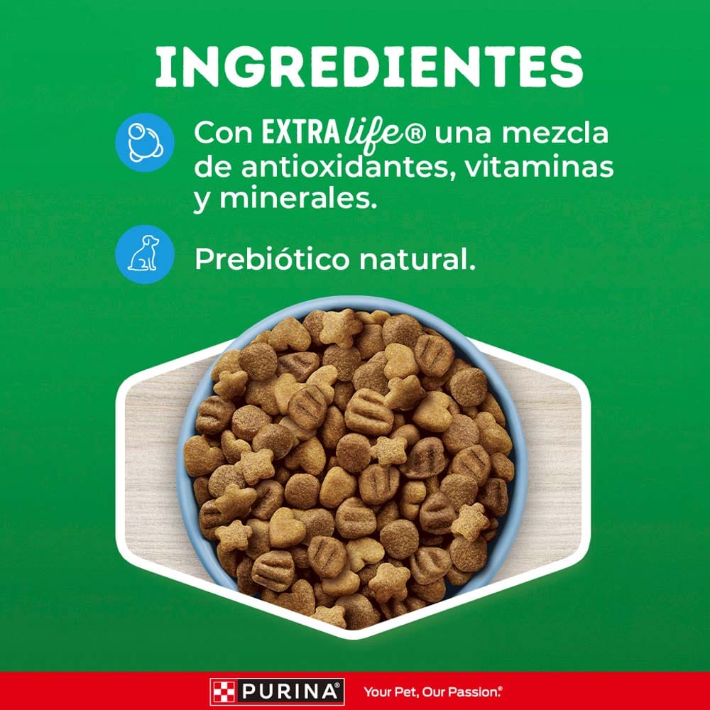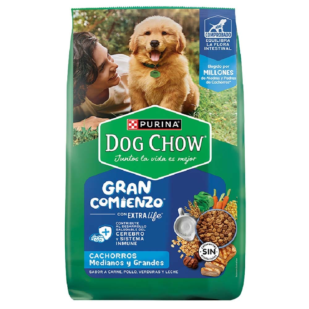 NUEVO DOG CHOW CON EXTRALIFE, una mezcla especial de antioxidantes, vitaminas y minerales para maximizar la calidad de vida de tu cachorro. Alimento 100% completo y balanceado que está específicamente formulado para cachorros medianos y grandes de 1 a 15 meses, hembras gestantes y lactantes. Reforzado con DHA e ingredientes de alta calidad.
