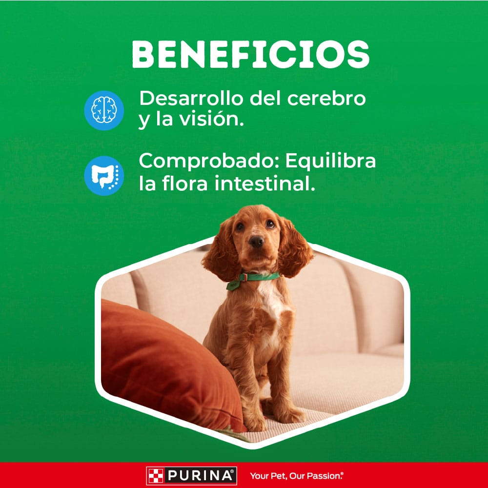 * 26% de poteínas y aminoácidos para músculos fuertes. *Con DHA de fuente natural, para el desarrollo del cerebro y la visión. * Con prebiótico natural y fibras naturales para una digestión sana y mejor absorción de nutrientes. * Con Calcio para un óptimo crecimiento de huesos y dientes fuertes. * Con Omega 3 y 6 que promueven un pelaje brillante. * Y con croquetas pequeñas especiales para su tamaño.