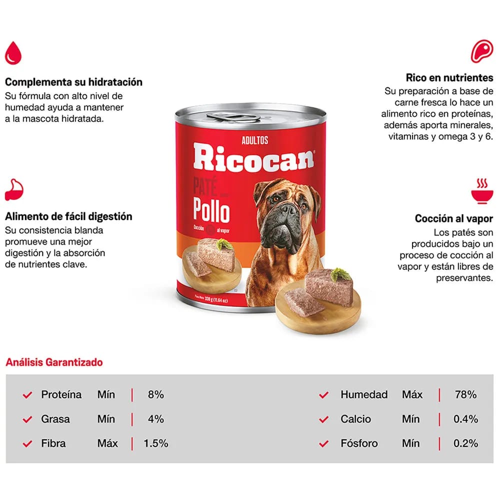 Alimento Húmedo para Perro RICOCAN Adulto Sabor Lata 330g