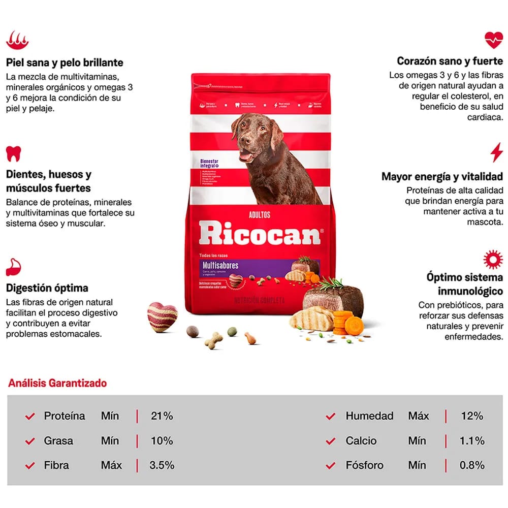 Alimento para Perro RICOCAN Adulto Todas las Razas Multisabores Bolsa 1Kg