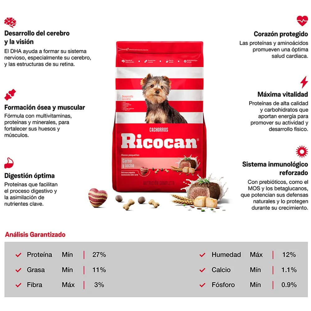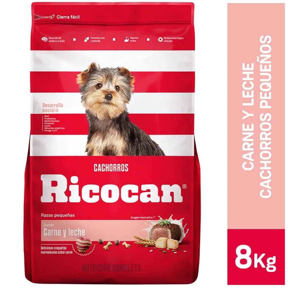 Alimento para Perro RICOCAN Cachorro Pequeños Sabor Carnes y Leche Bolsa 8Kg