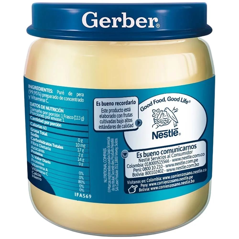 Compota GERBER Pera Frasco 113g