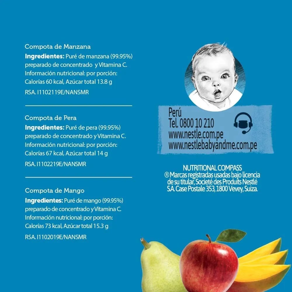 Compotas hechas con 100% puré de fruta, sin azúcar añadida y sin preservantes
