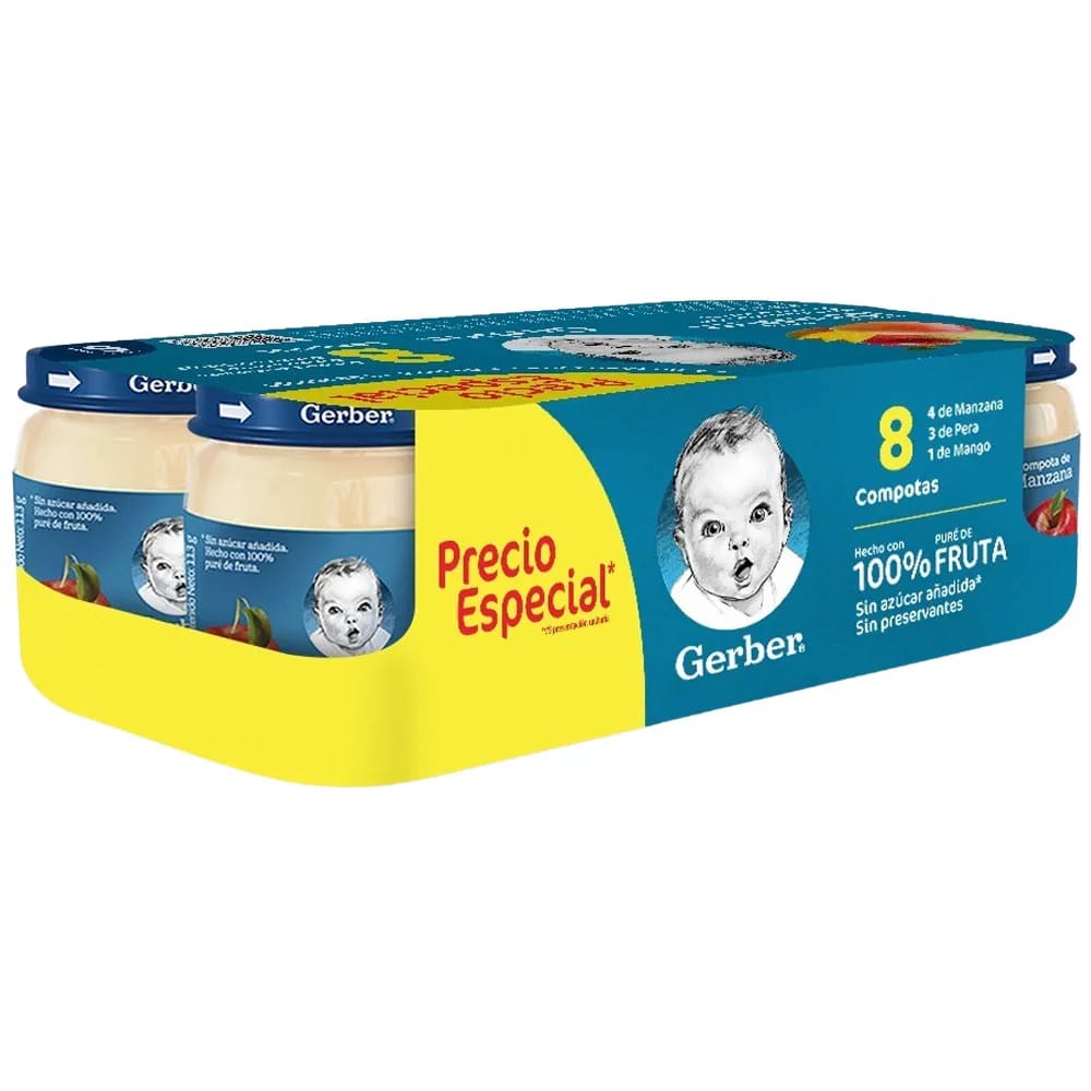 Compota GERBER Varios Sabores Paquete 8un