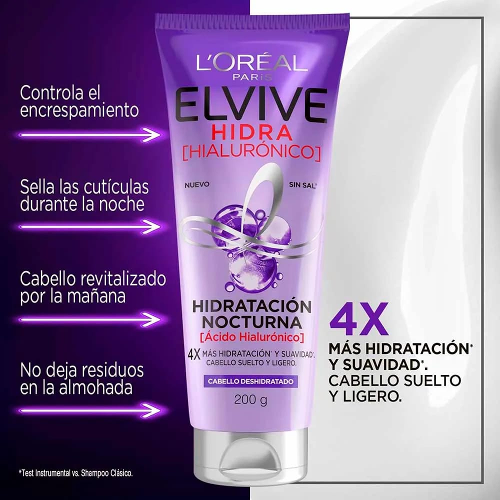 Crema de Tratamiento para Cabello ELVIVE Hidratación Nocturna con Ácido Hilaurónico Frasco 200g