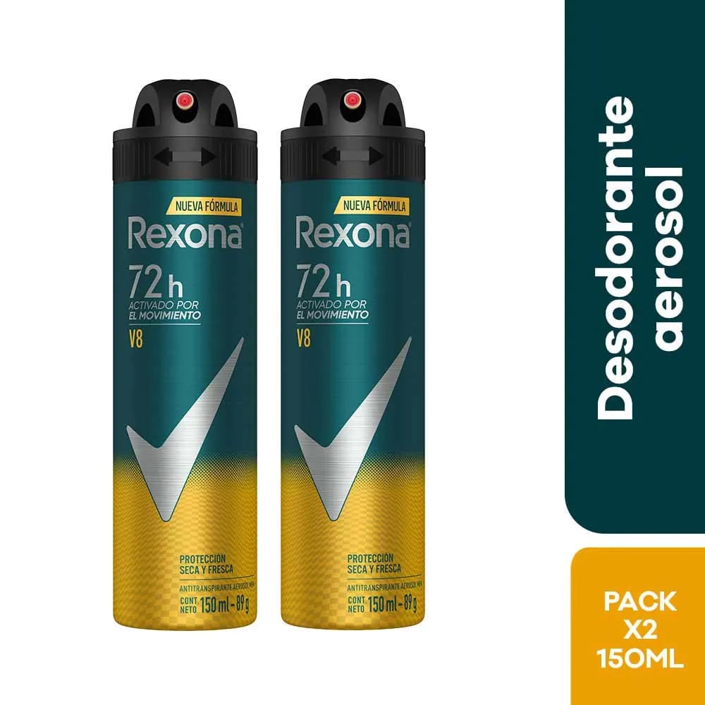 Desodorante para Hombre en Aerosol REXONA V8 Frasco 150ml Paquete 2un