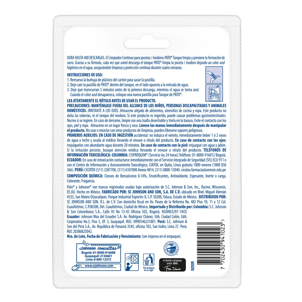 Desinfectante de Baño PATO Pastilla Fragancia Marina Empaque 3un