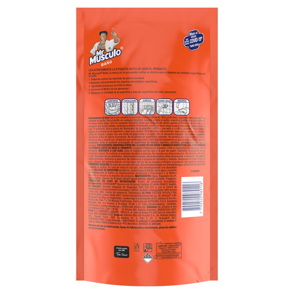 Desinfectante Líquido de Baño MR. MÚSCULO Repuesto Doypack 500ml