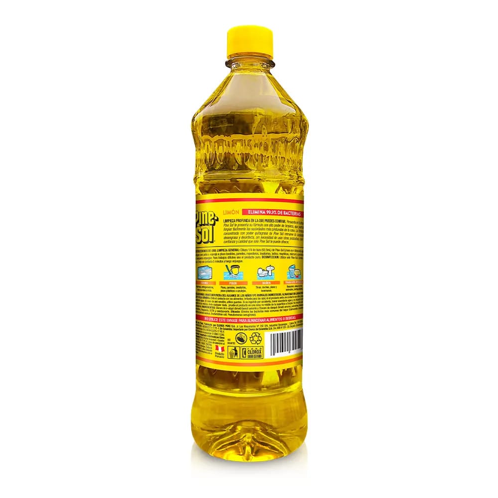 </p><br><strong>Limpiadores Multiusos</strong> </p><br>Limpieza profunda en la que puedes confiar. Pensando en ti ahora Pine Sol te presenta su fórmula con alto poder de limpieza que elimina las bacterias más comunes hasta en un 99%. Te permite limpiar fácilmente las suciedades más profundas de tu casa, desinfectar y desodorizar. La fórmula concentrada te permite eliminar la grasa, remover la suciedad y otras manchas difíciles en todos los ambientes de tu hogar sin necesidad de usar otros productos. Además, el Desinfectante Pine-Sol dejará un agradable y duradero aroma a limón.</p><br>