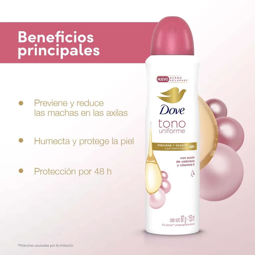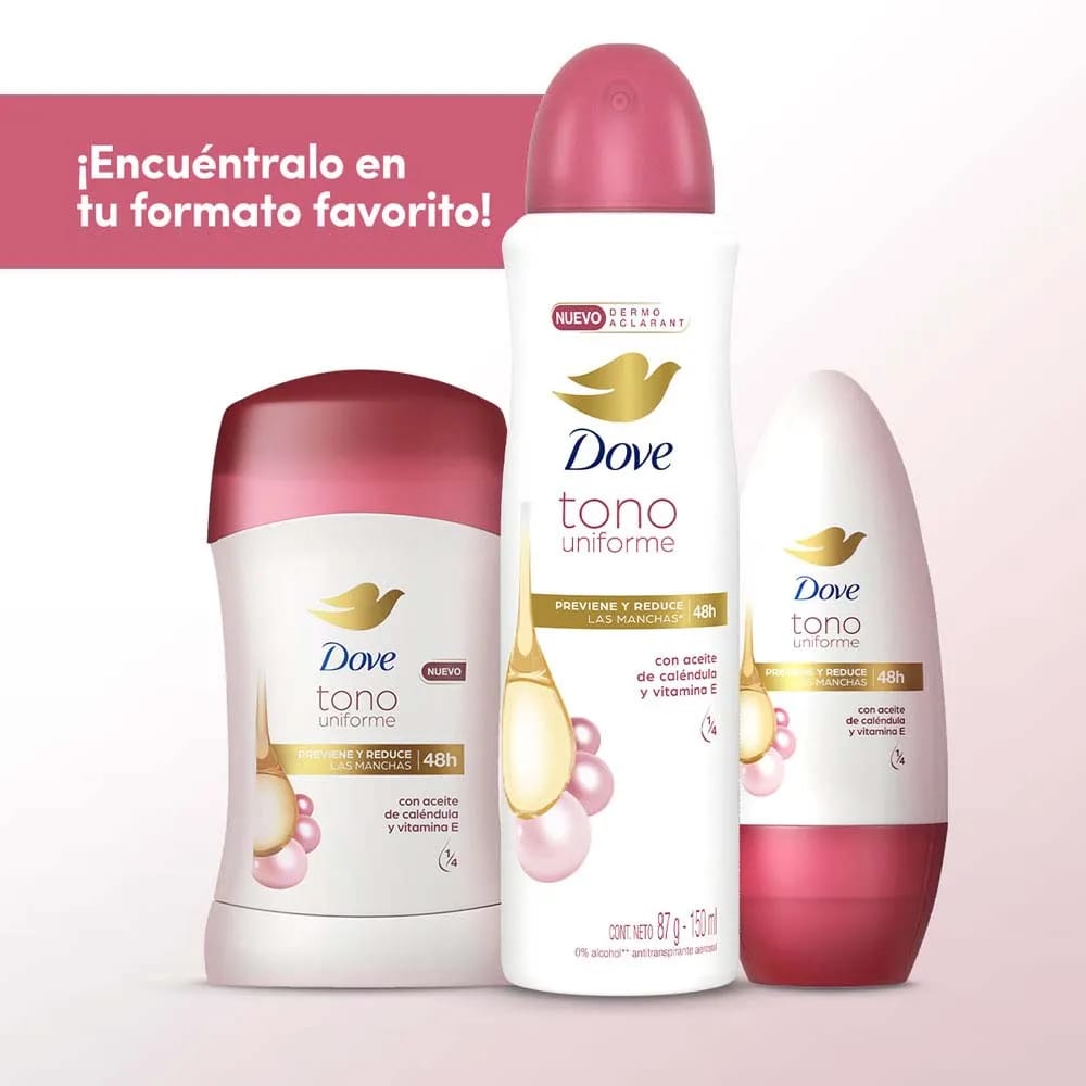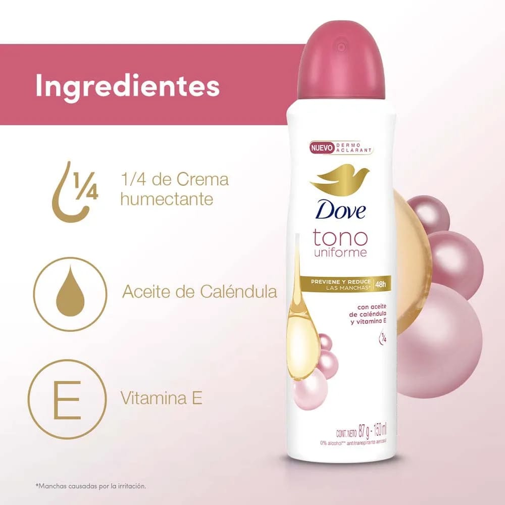 Desodorante para Mujer en Aerosol DOVE Tono Uniforme Caléndula Frasco 150ml