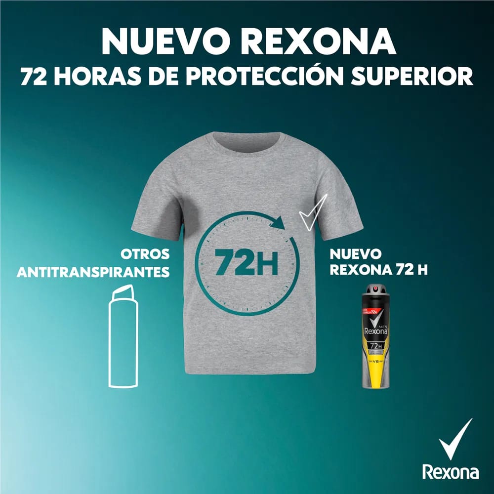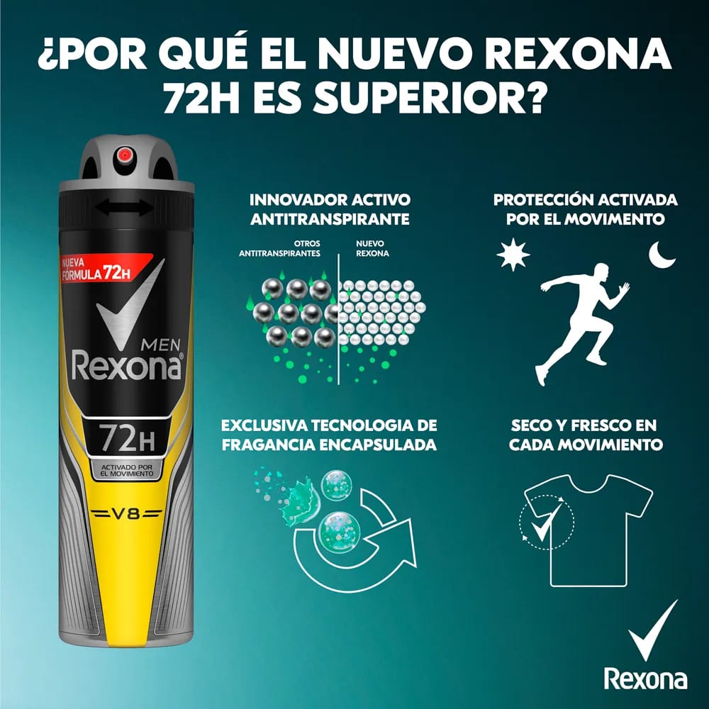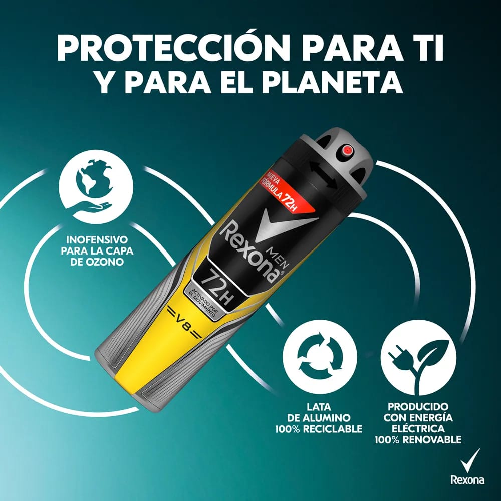Desodorante para Hombre en Aerosol REXONA V8 Frasco 150ml Paquete 2un