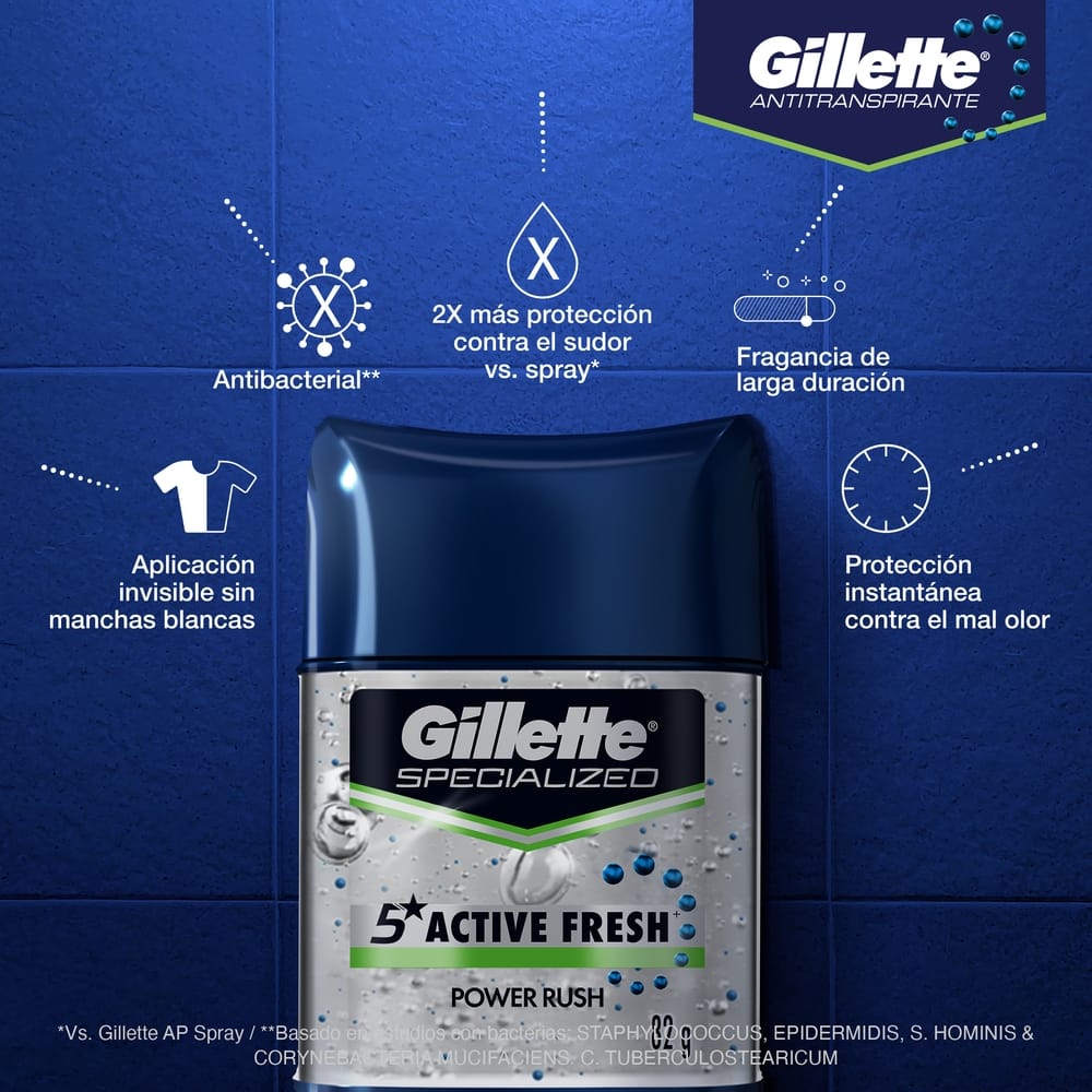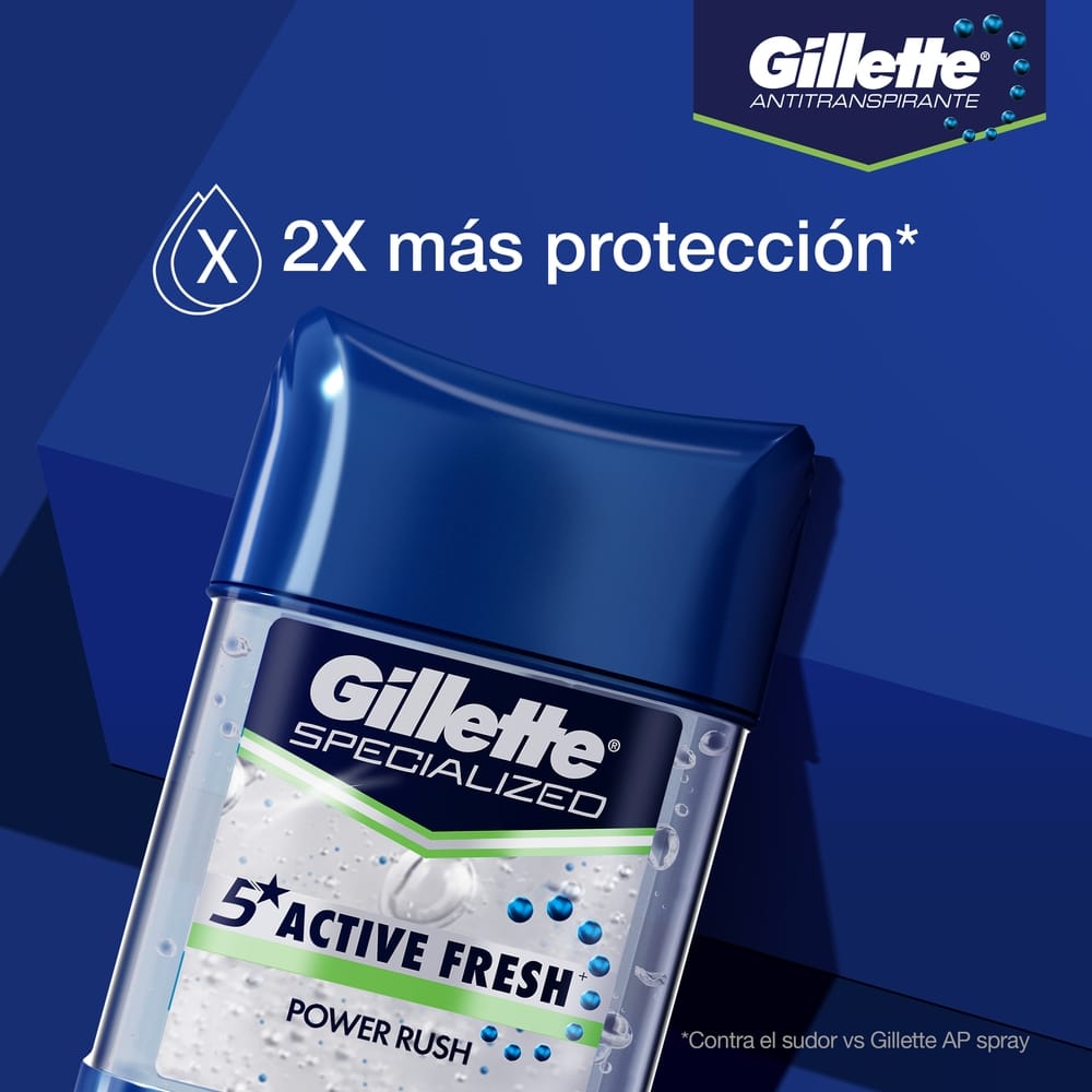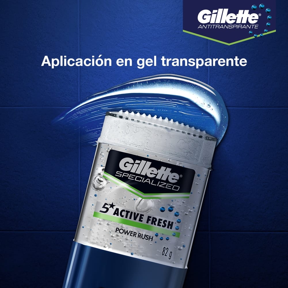 Desodorante para Hombre en Gel GILLETTE Invisible Specialized Active Fresh Power Rush Frasco 82g