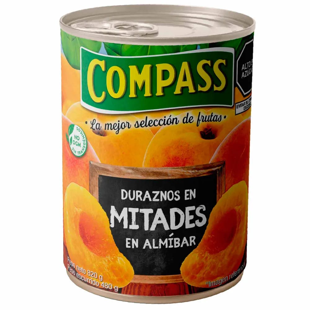 Duraznos en Mitades COMPASS en Almíbar Lata 820g