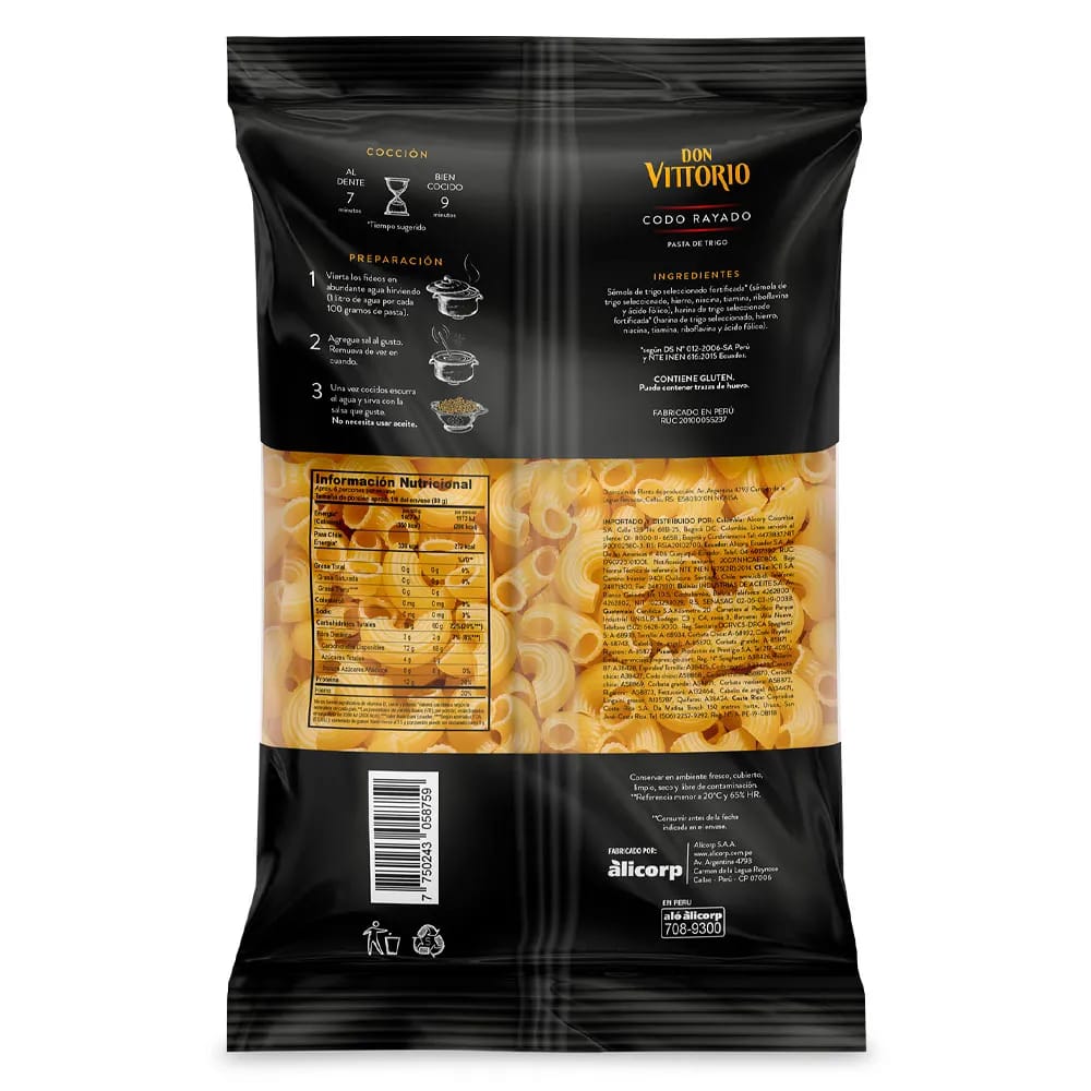 Fideo DON VITTORIO Codo Rayado Bolsa 500g