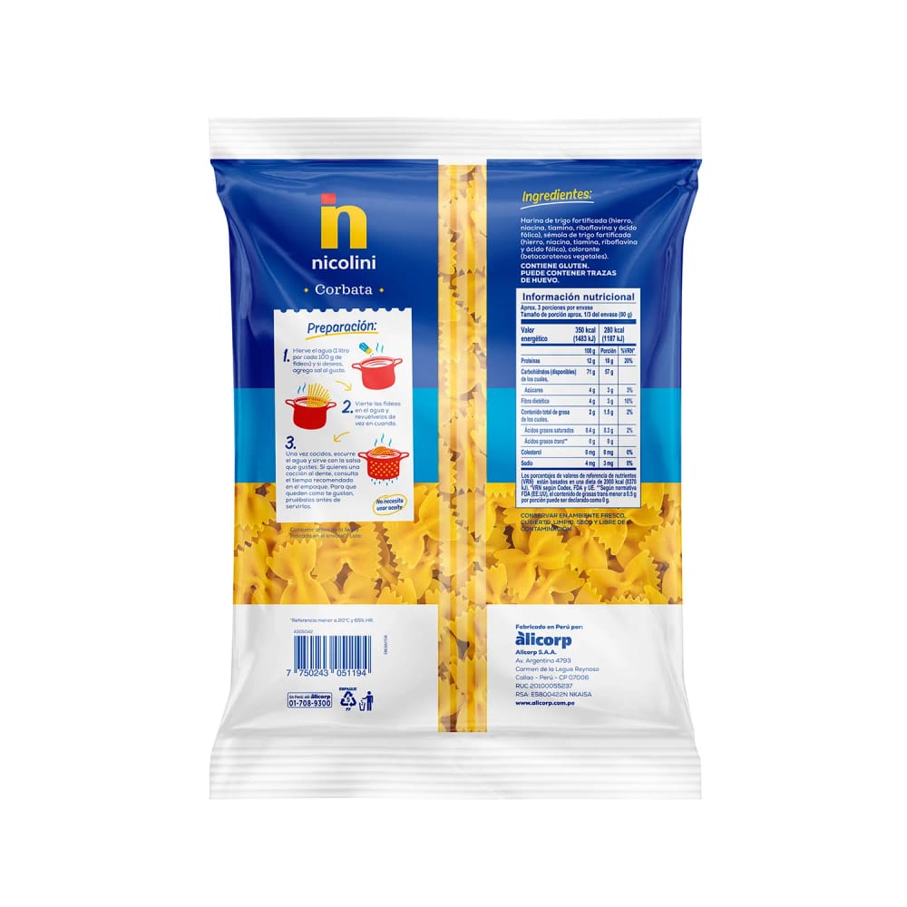 Fideos Corbata NICOLINI Bolsa 250g