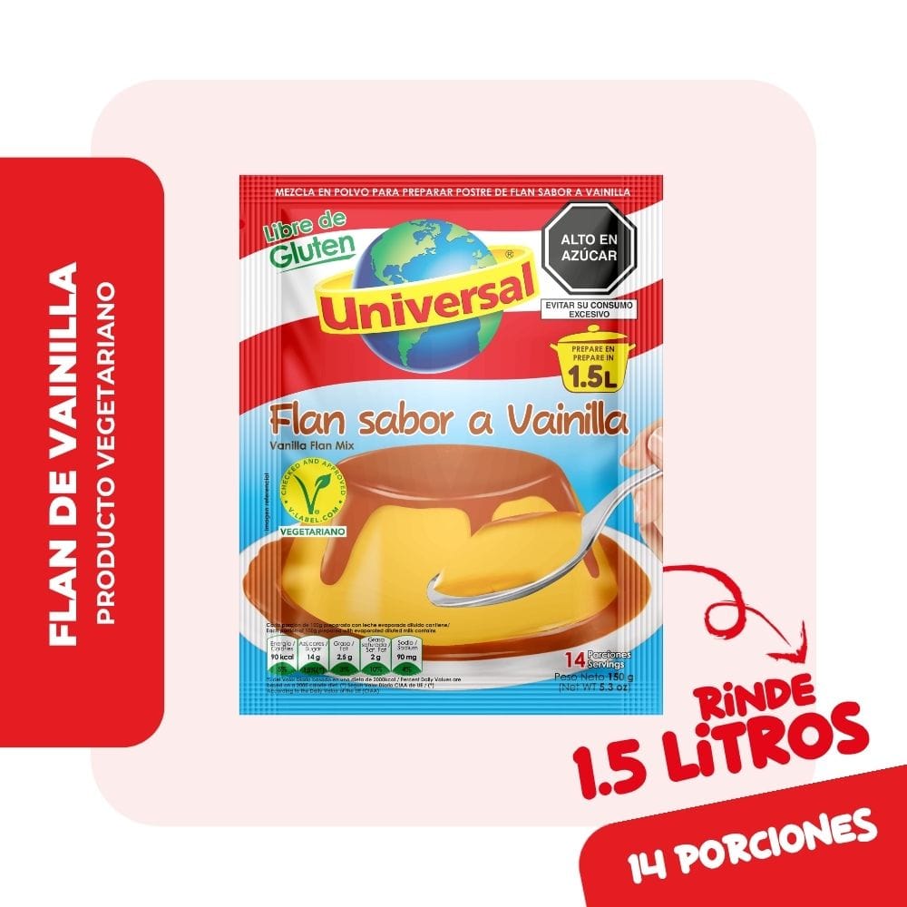 Flan UNIVERSAL Sabor a Vainilla Bolsa 150g