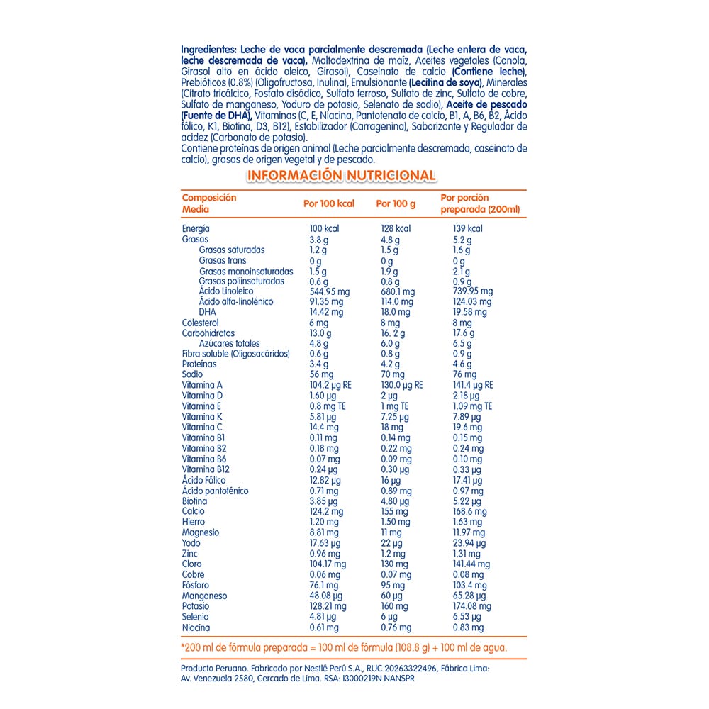 Conservar en un lugar fresco y seco. Una vez que el envase de la fórmula ha sido abierto, almacenar en la refrigeradora y consumir en las sgtes 24 h