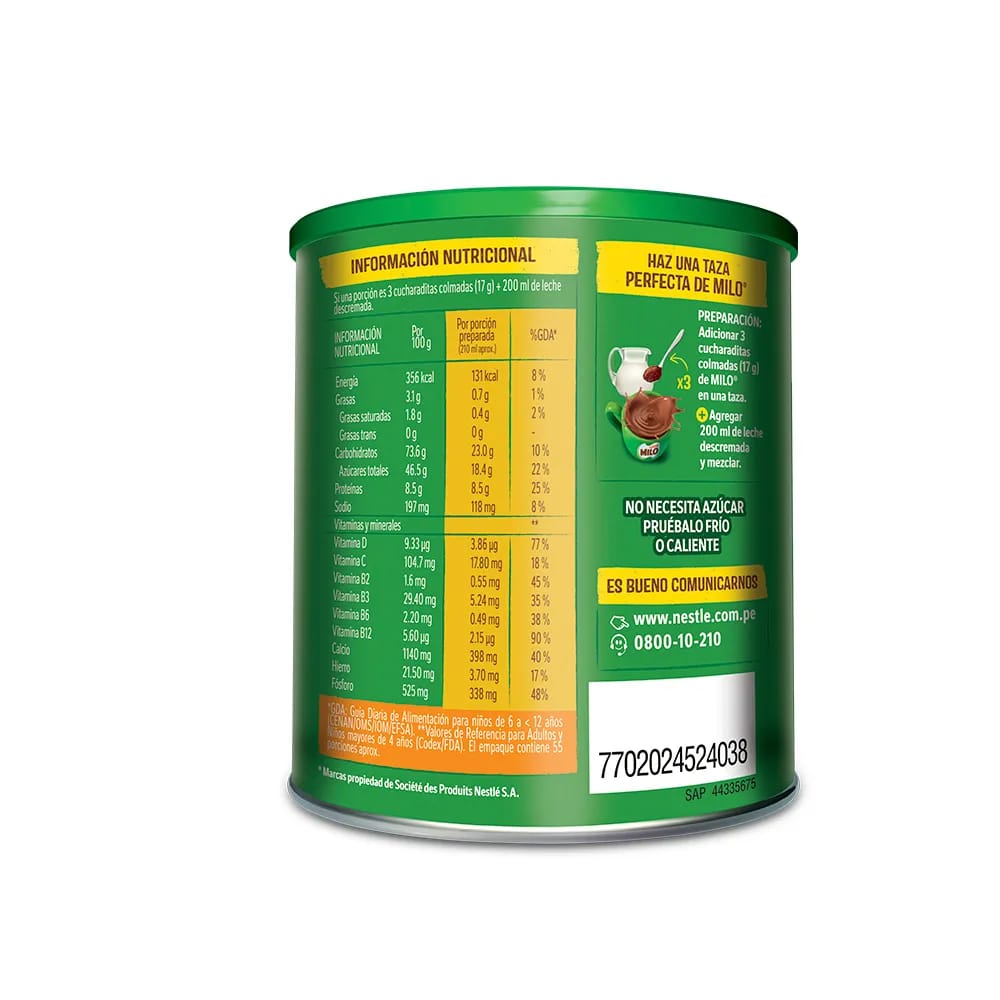 Milo Activ-Go es un extracto de malta único y una fuente de micronutrientes que juegan un rol en la liberación de energía, función muscular y el mantenimiento de huesos que son funciones esenciales para la actividad física en los niños