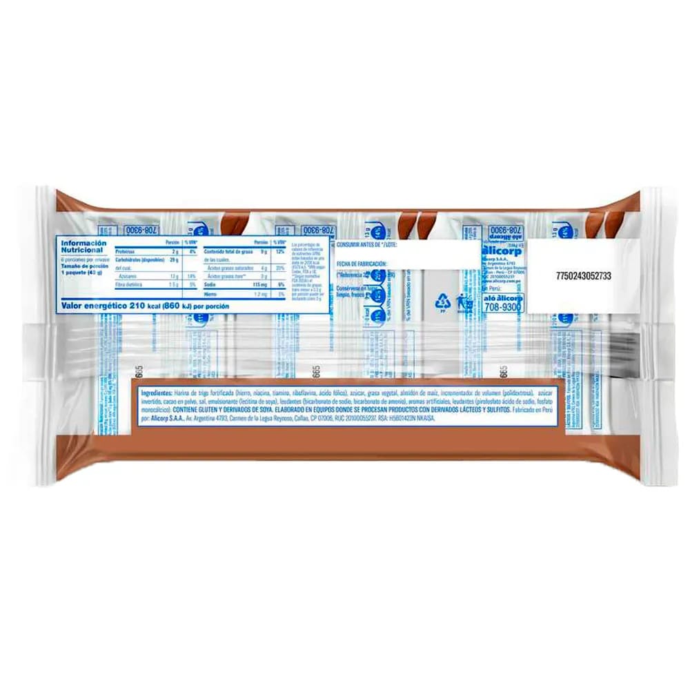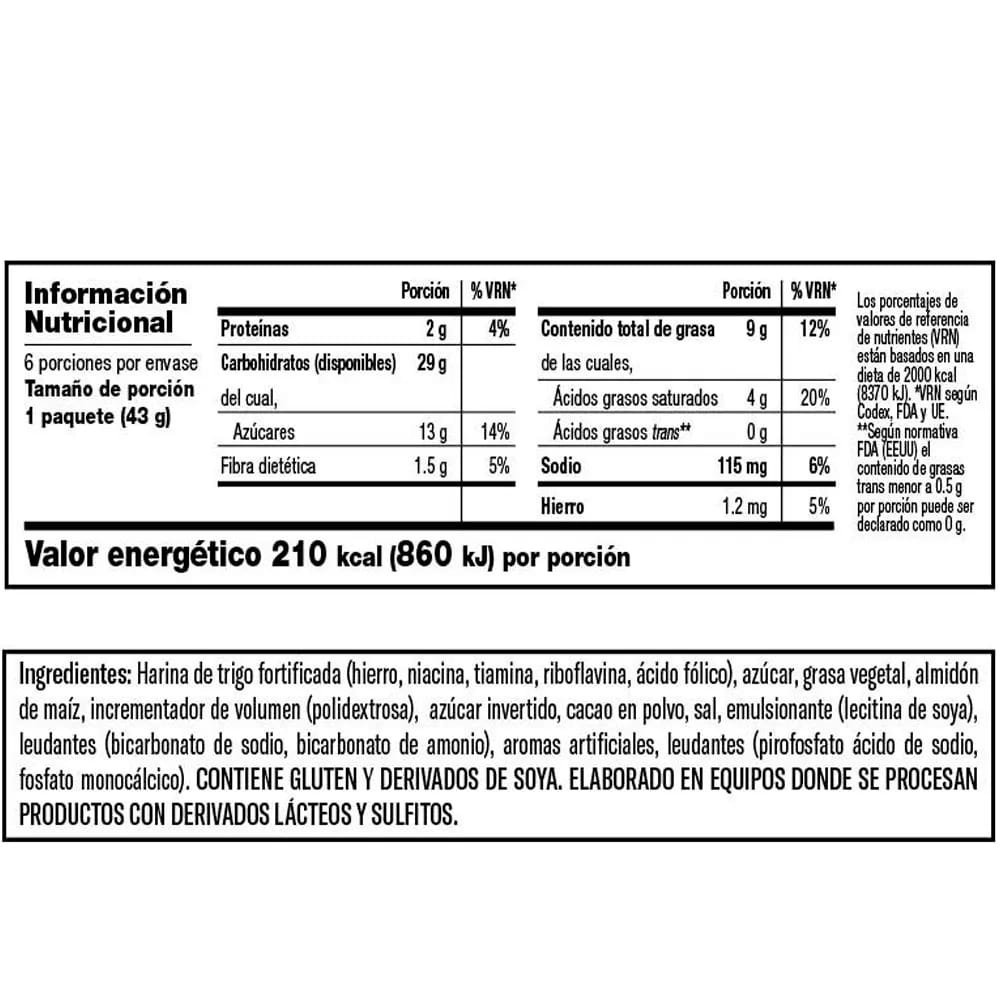 Galleta CASINO Sabor Chocolate Bolsa 43g Paquete 6un