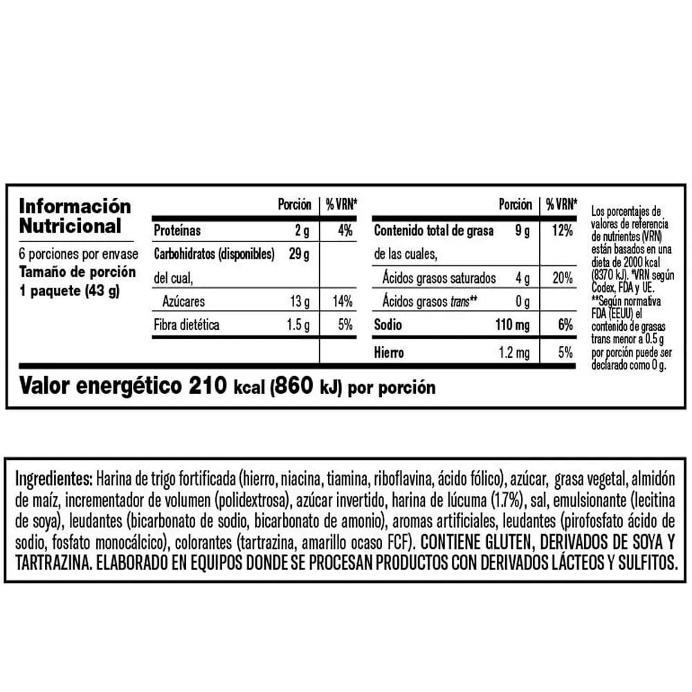 Galleta CASINO Sabor Lúcuma Bolsa 43g Paquete 6un