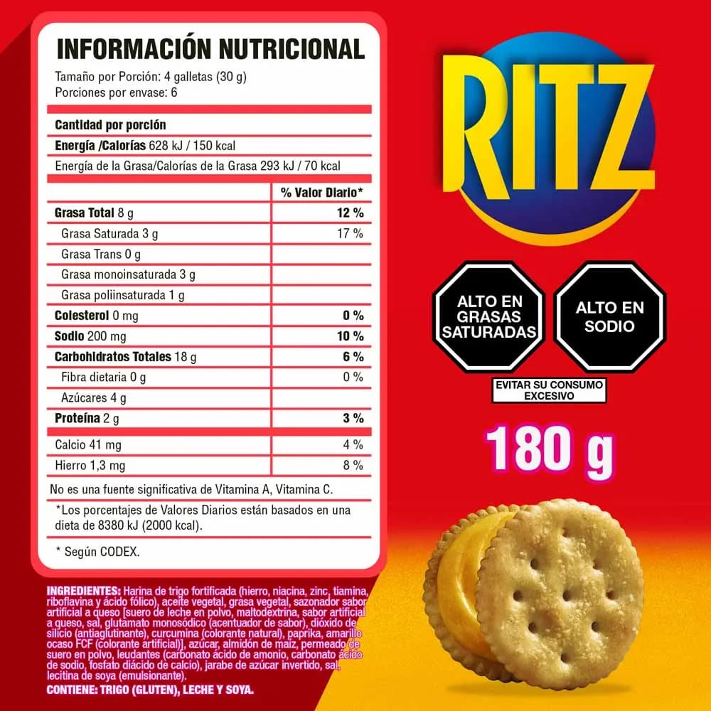 Galletas Saladas RITZ Sabor a Queso Bolsa 30g Paquete 6un