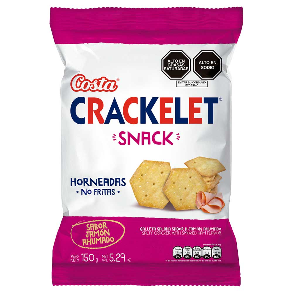 Galletas Saldas CRACKELET Snack Jamón Ahumado Bolsa 150g