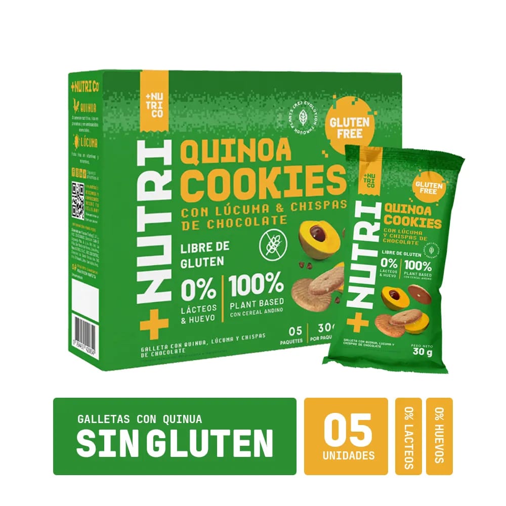 Galletas sin Gluten Lúcuma y Chips Chocolate +NUTRI Co Caja 5un