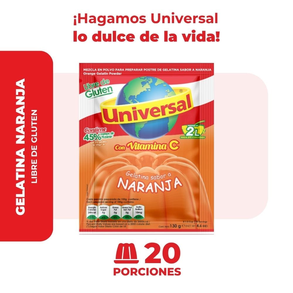 Gelatina UNIVERSAL Sabor a Naranja Bolsa 130g