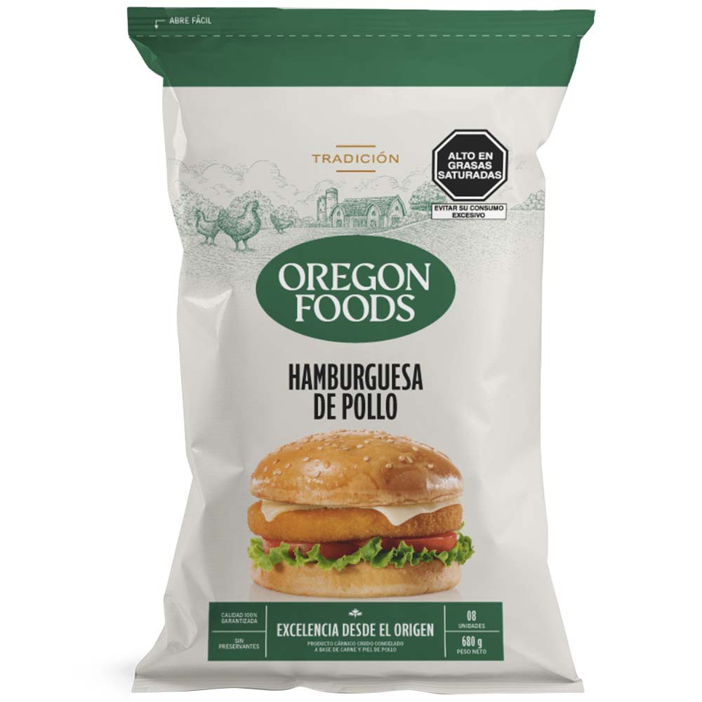 Hamburguesa de Pollo OREGON FOODS Bolsa 8un