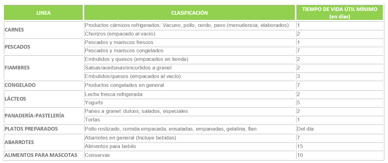 Importante: Tenga presente que los rangos de vida útil corresponden al tiempo de vigencia mínimo garantizado, es probable que los productos recibidos tengan, particularmente, una vigencia mayor a la antes detallada. Asimismo, le recomendamos almacenar los productos de forma inmediata a su recepción a fin de preservar sus propiedades y características, teniendo en cuenta las condiciones de conservación de cada uno de ellos (temperatura ambiente, refrigeración y/o congelación, entre otros).