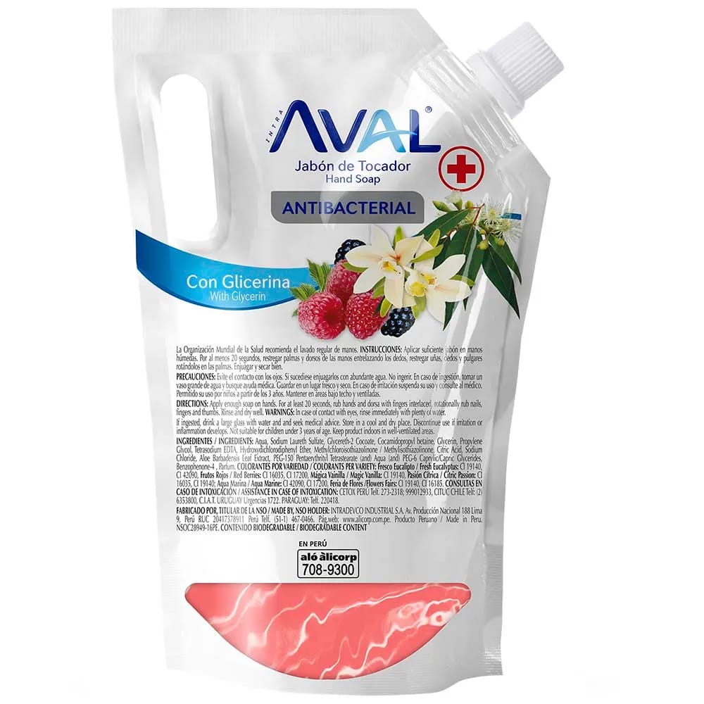 Jabón Líquido AVAL Antibacterial Frutos Rojos Doypack 800ml