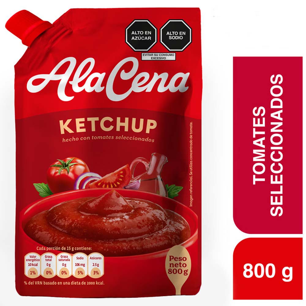 Concentrado de tomate, agua, azúcar, vinagre, sal, almidones modificados, cebolla, ajo, especias, sustancia conservadora (sorbato de potasio), edulcorante (sucralosa)