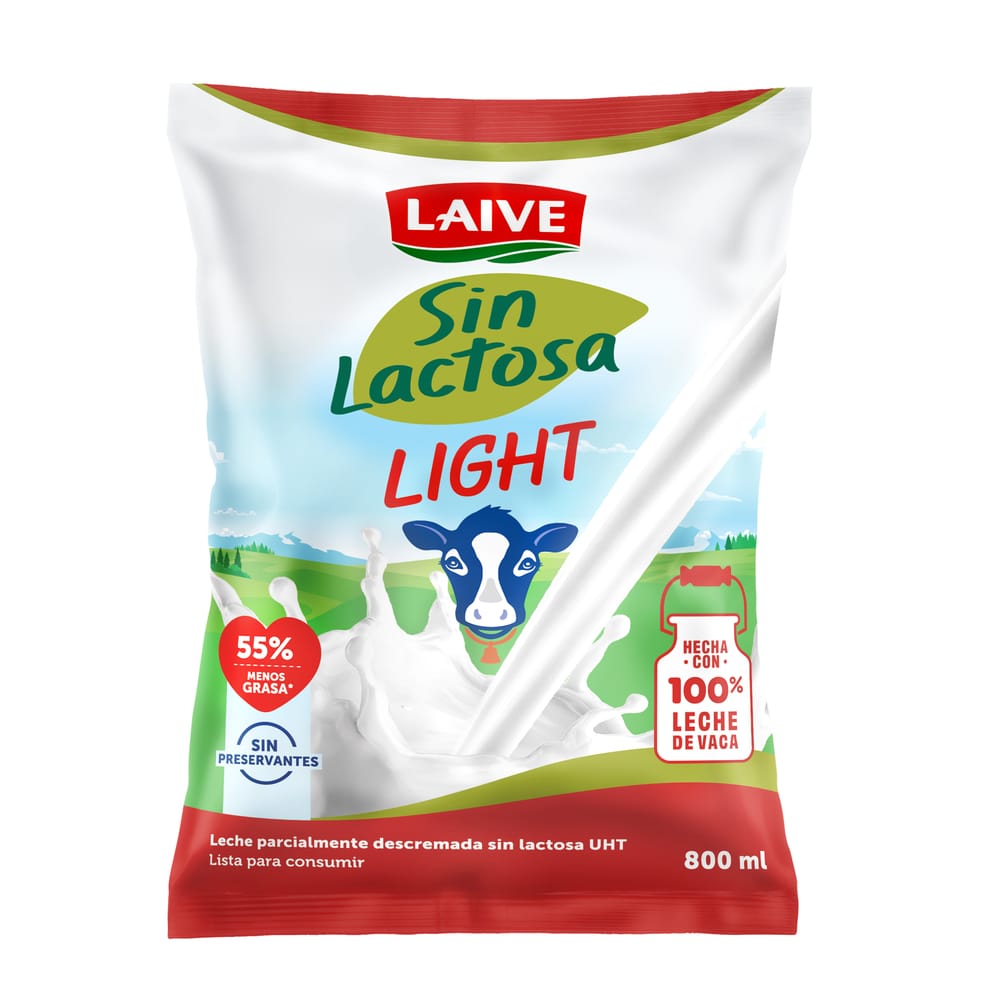 Leche UHT LAIVE Light sin Lactosa Bolsa 800ml